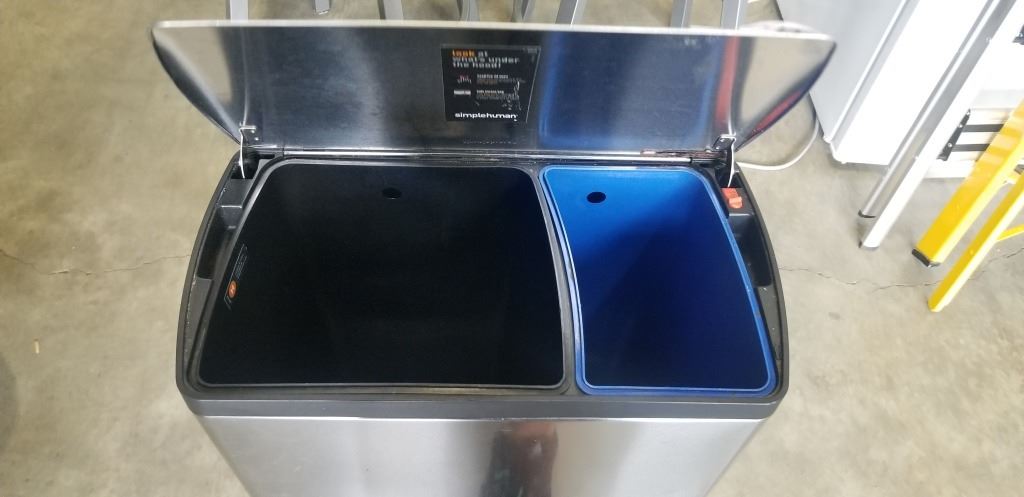 SIMPLE HUMAN DUAL COMPARTMENT GARBAGE CAN AND RECYCLING