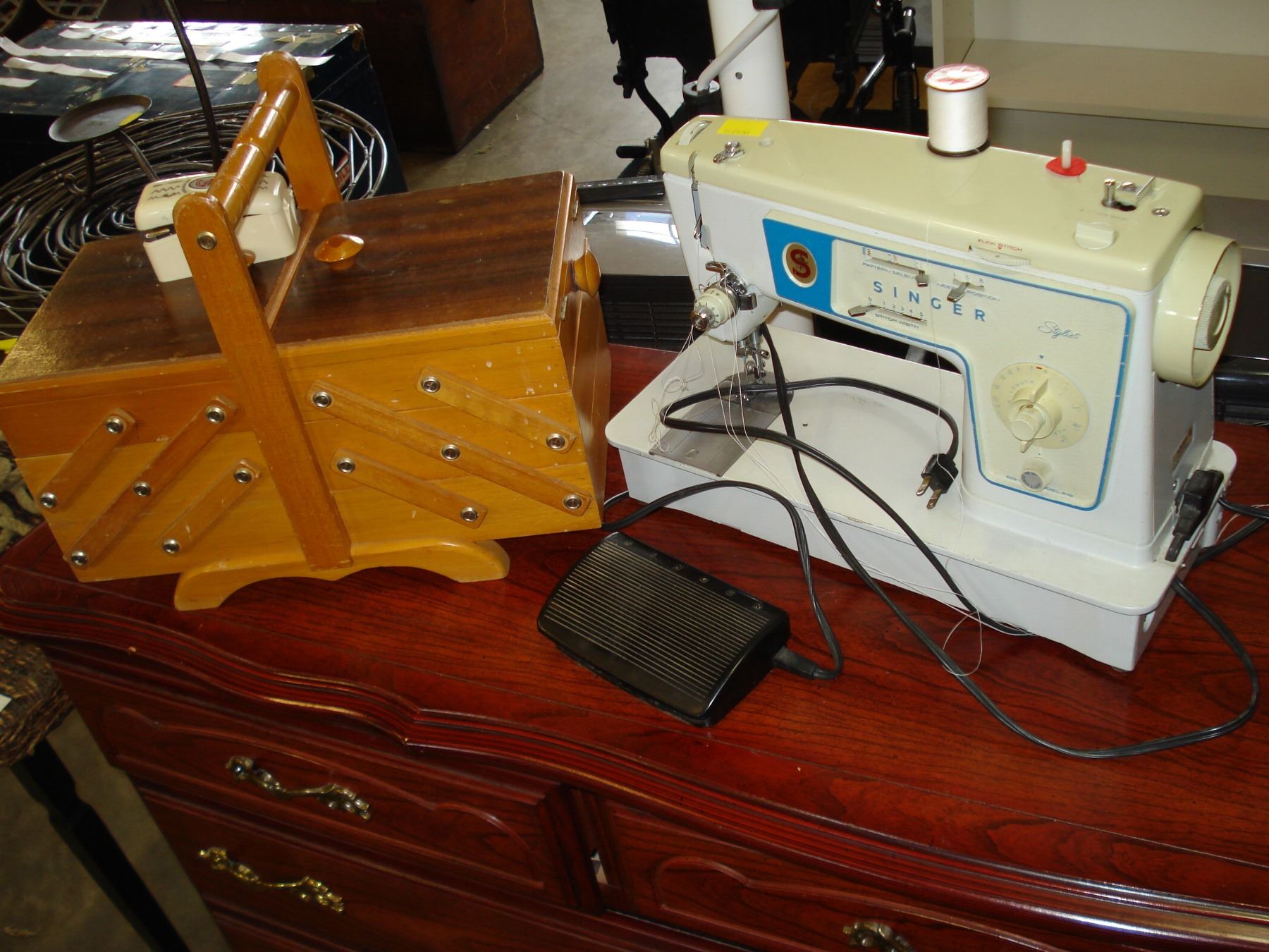 SINGER SEWING MACHINE AND SEWING BOX