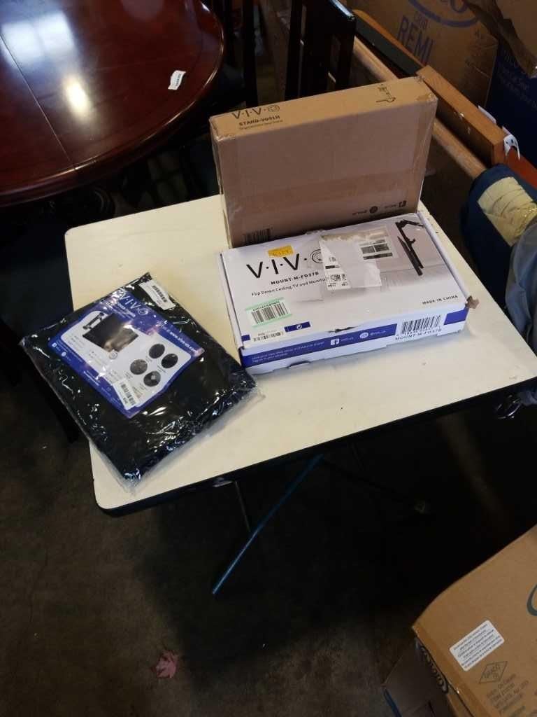 SINGLE MONITOR DESK MOUNT, FLIP DOWN CEILING TV MOUNT, AND TV COVER