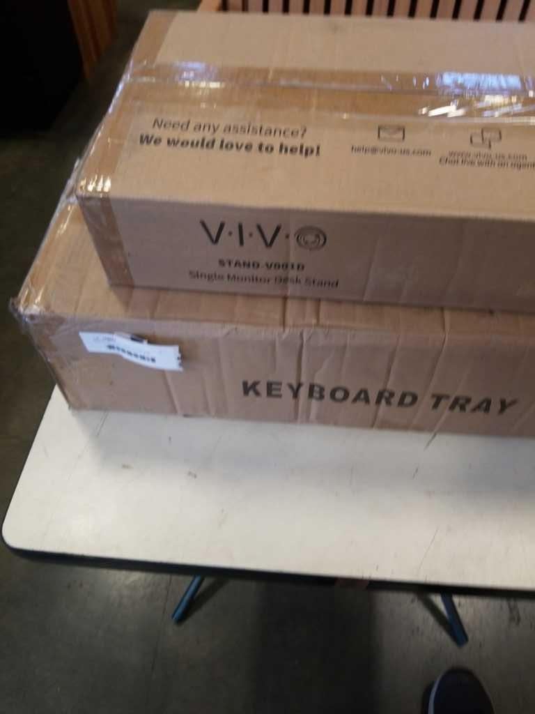 SINGLE MONITOR DESK STAND AND KEYBOARD TRAY