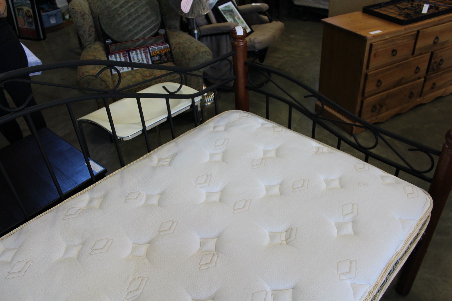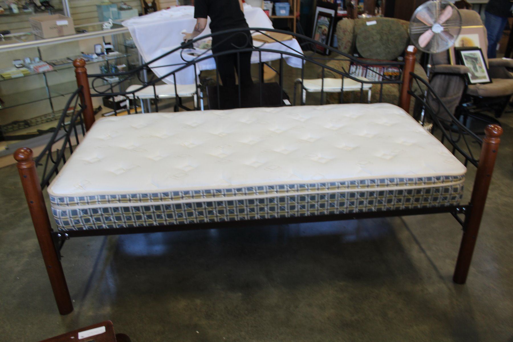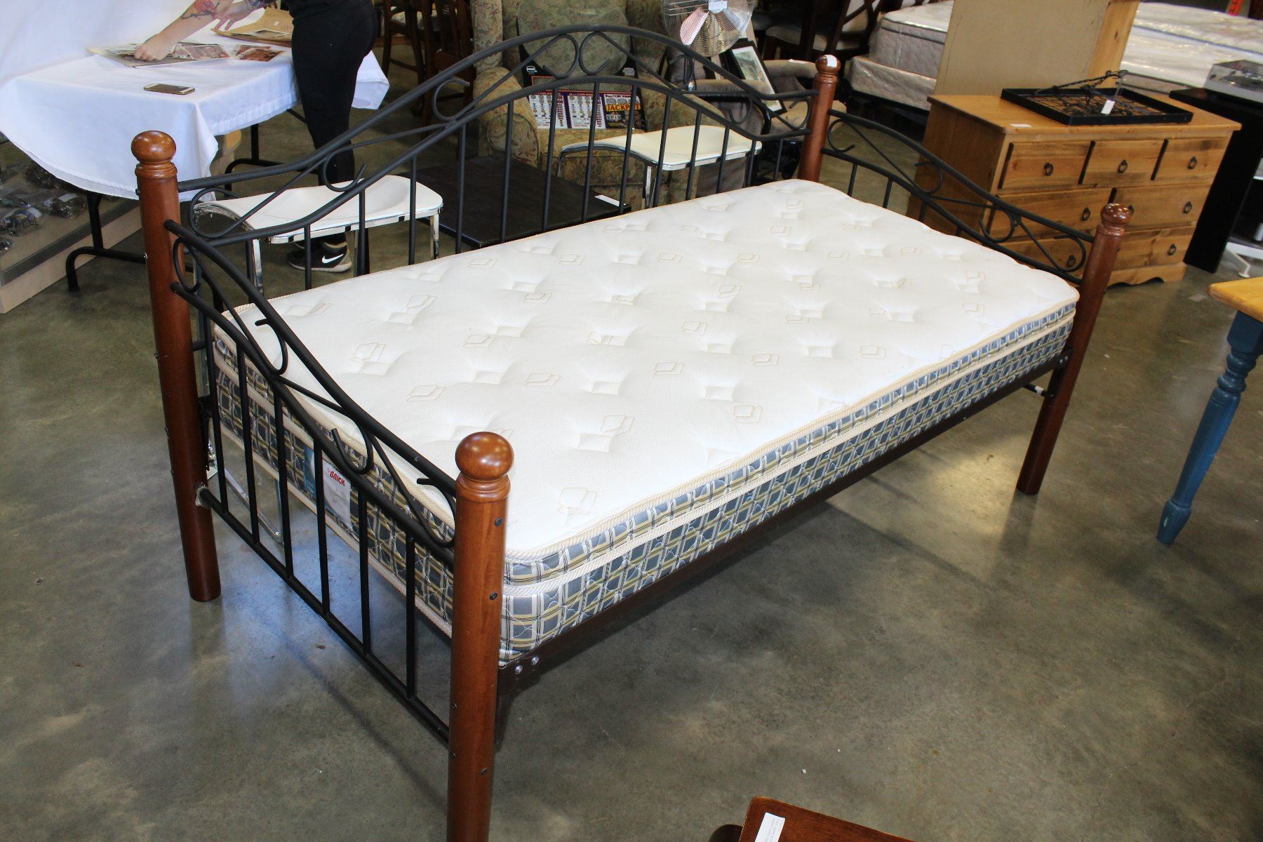 SINGLE SIZE WOOD AND METAL FRAMED DAY BED WITH MATRESS
