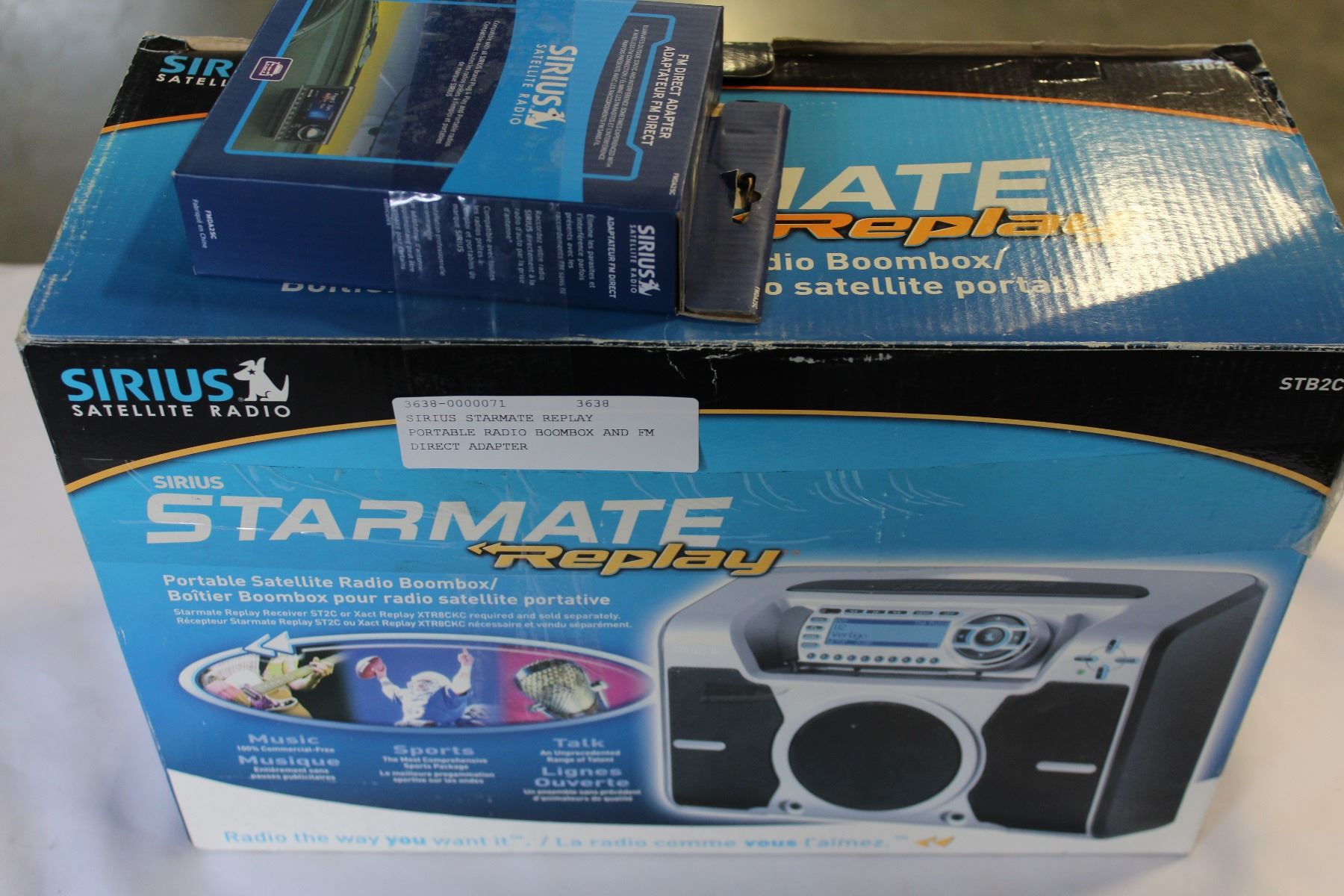 SIRIUS STARMATE REPLAY PORTABLE RADIO BOOMBOX AND FM DIRECT ADAPTER