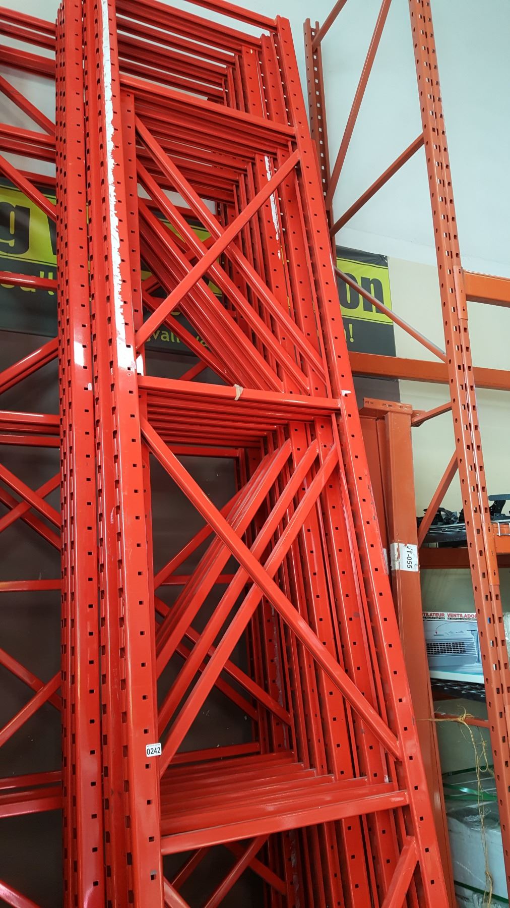 SIX 14 FOOT TALL BY 33 INCH PALLET RACKING UPRIGHTS AND AND TWELVE 100 INCH CROSS BEAMS