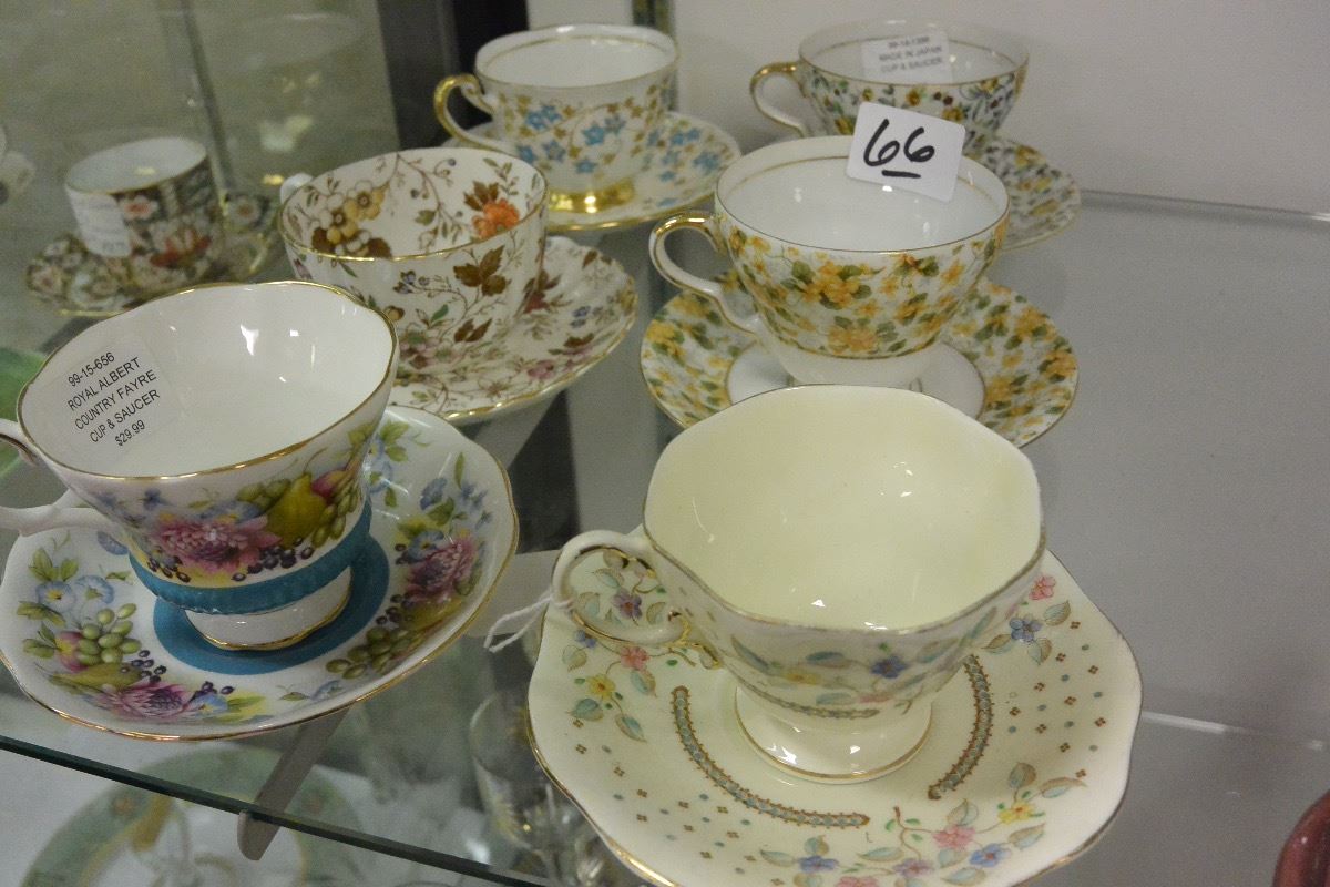 SIX BONE CHINA CUPS AND SAUCERS