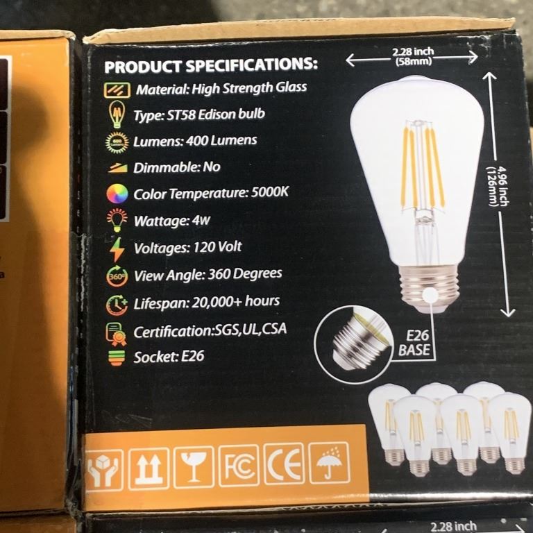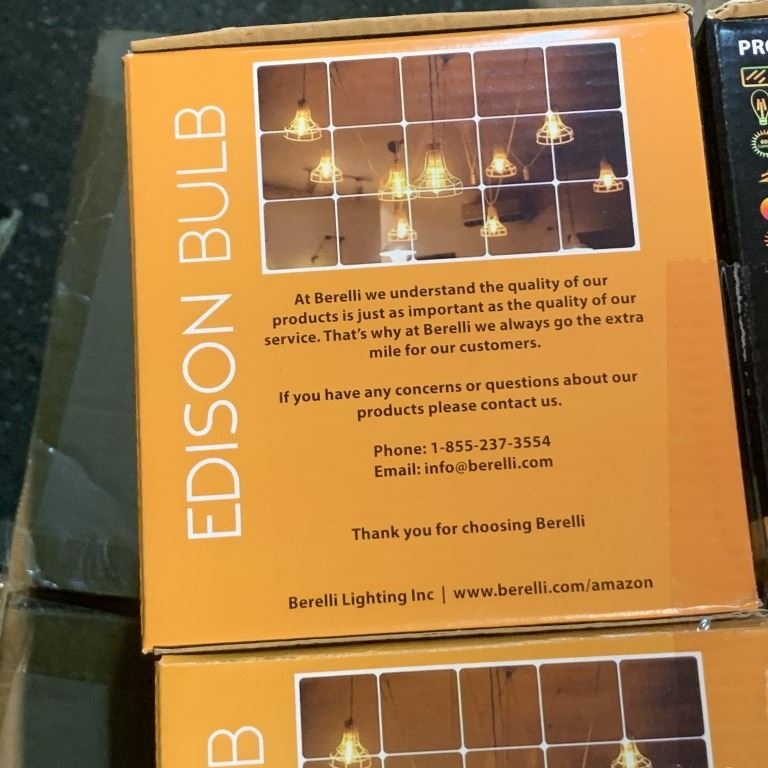 SIX BOXES OF BERELLI SD58 2700K E26 STANDARD SOCKET LIGHT BULBS SIX PER BOX RETAIL $150