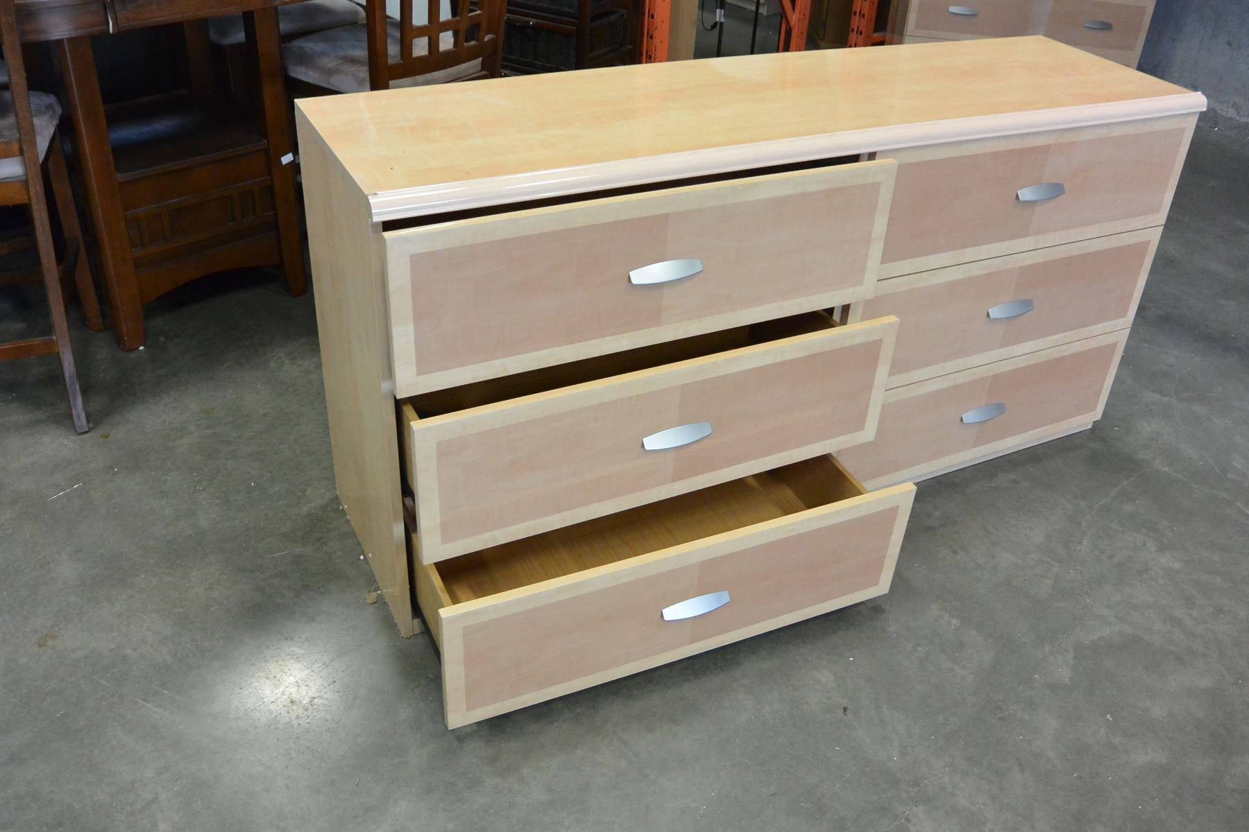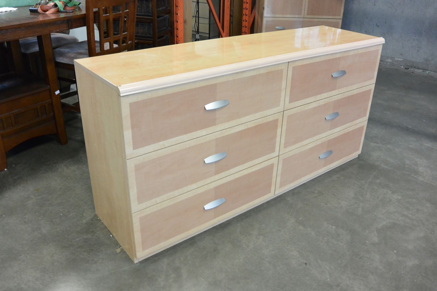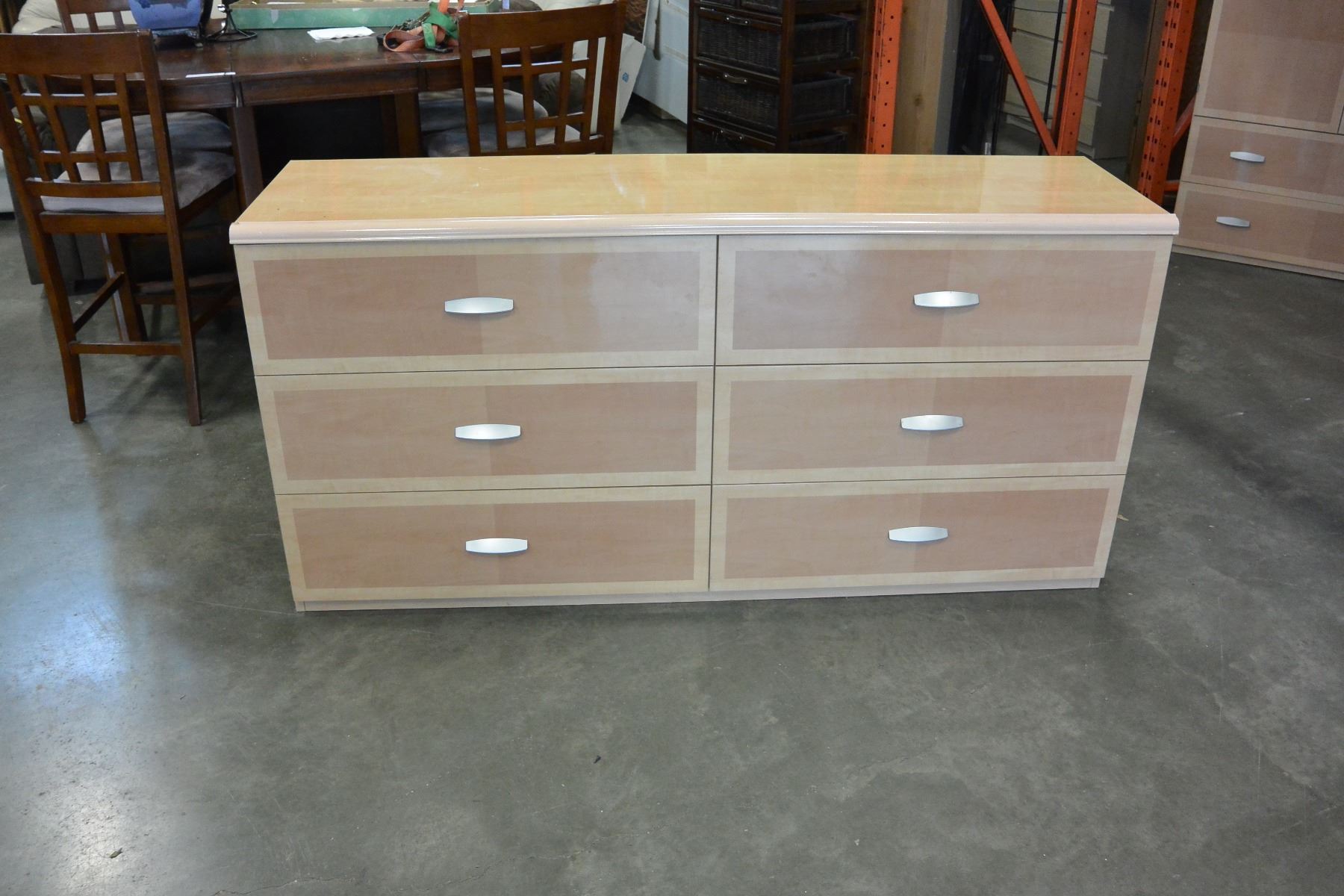 SIX DRAWER GLAZED FINISH MODERN DRESSER