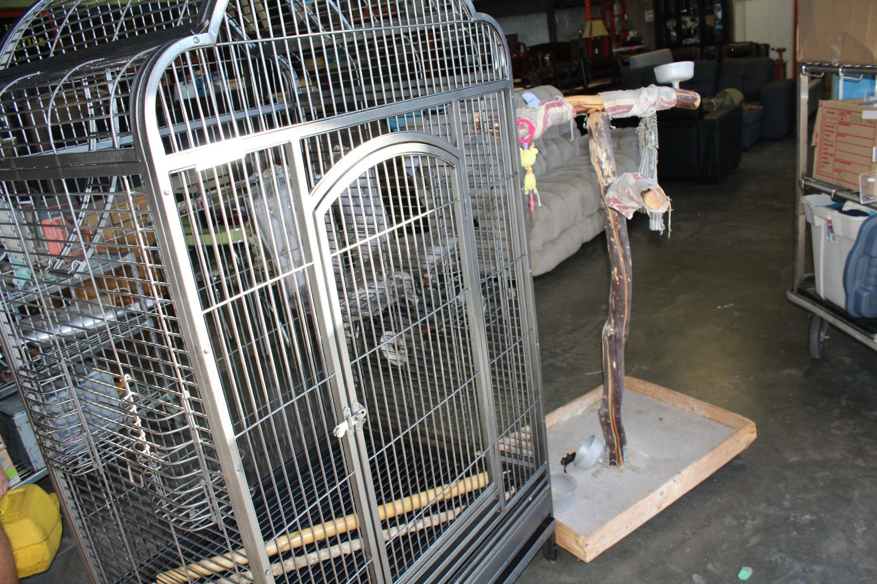 SIX FOOT PARROT CAGE AND ROLLING BIRD PERCH