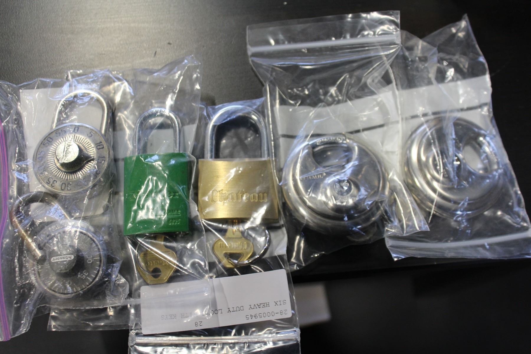 SIX HEAVY DUTY LOCKS WITH KEYS