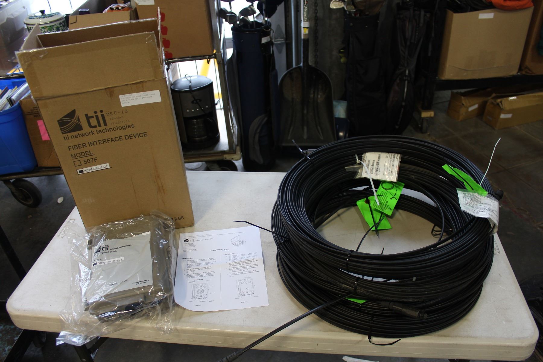 SIX ROLLS OF FIBER OPTIC CABLE AND 6 FIBER OPTIC INTERFACE DEVICES