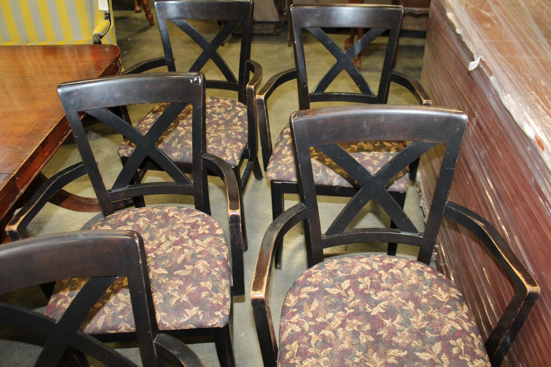 SIX WOOD UPHOLSTERED SEAT DINING ARMCHAIRS