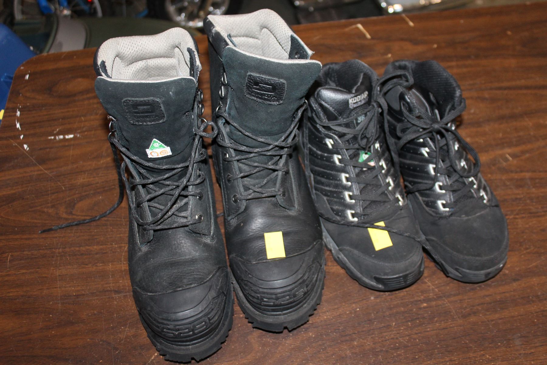 SIZE 10.5 STEEL TOE DAKOTA BOOTS AND SIZE 9 STEELTOE KODIAK BOOTS