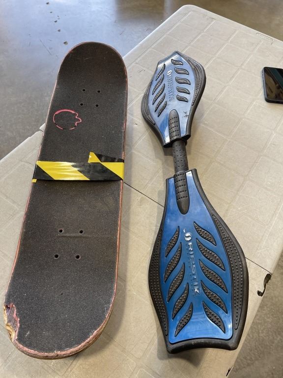SKATEBOARD, SKATE DECK AND RAZOR RIPSTICK