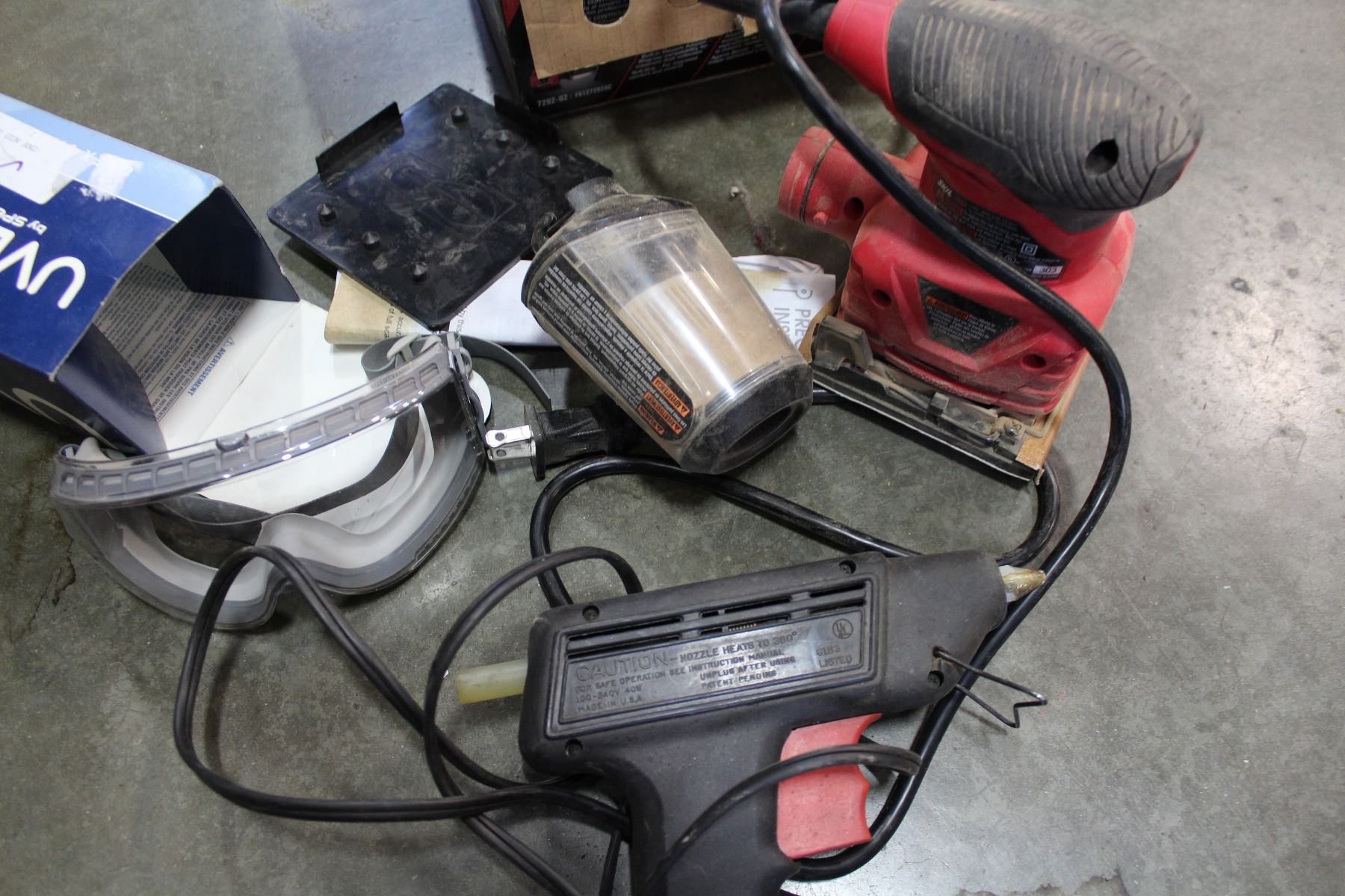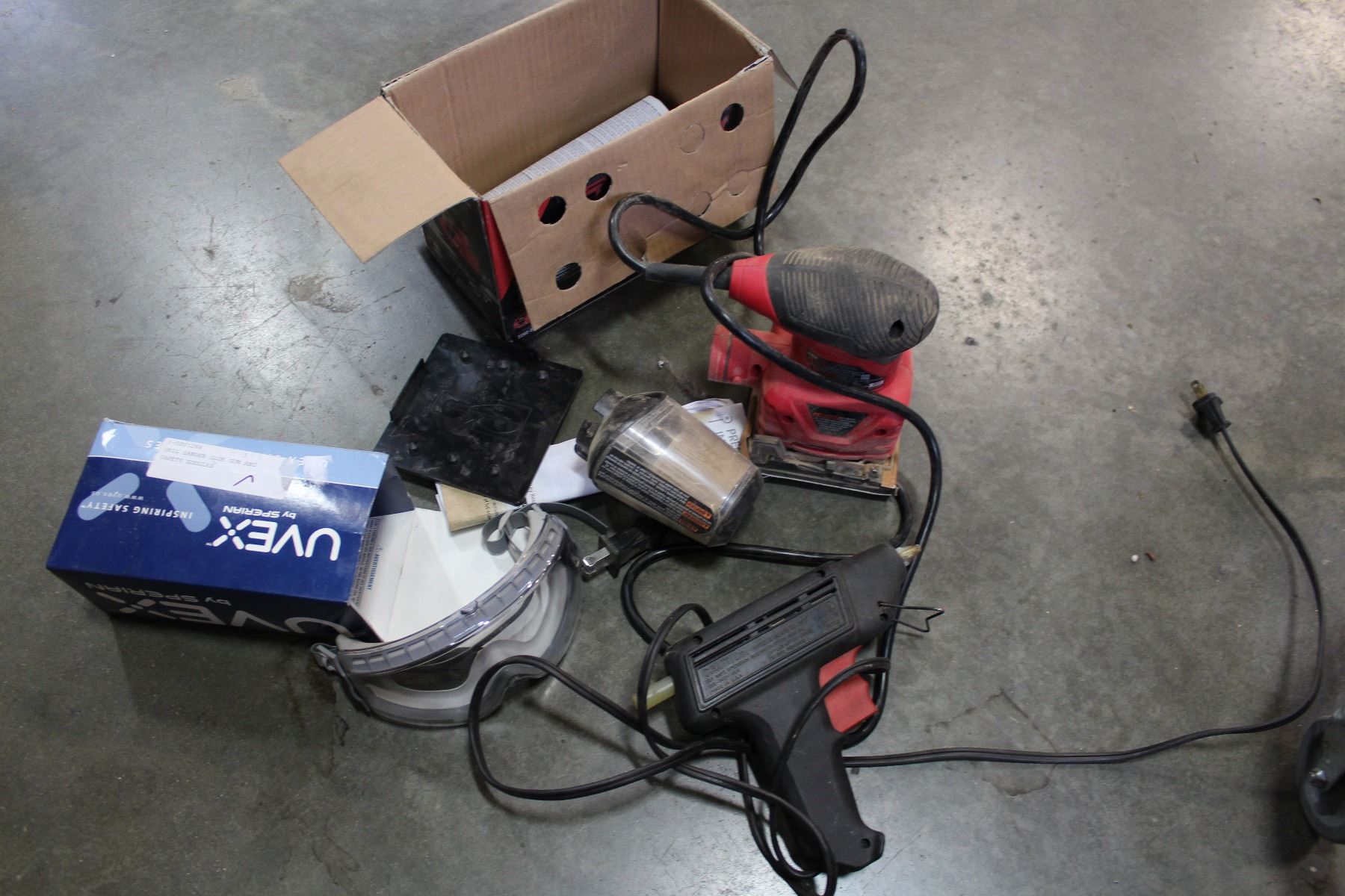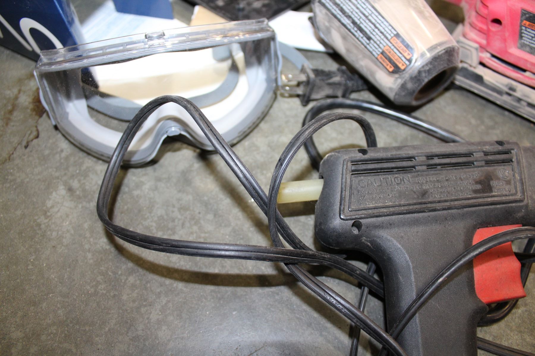 SKIL SANDER GLUE GUN AND SAFETY GOGGLES