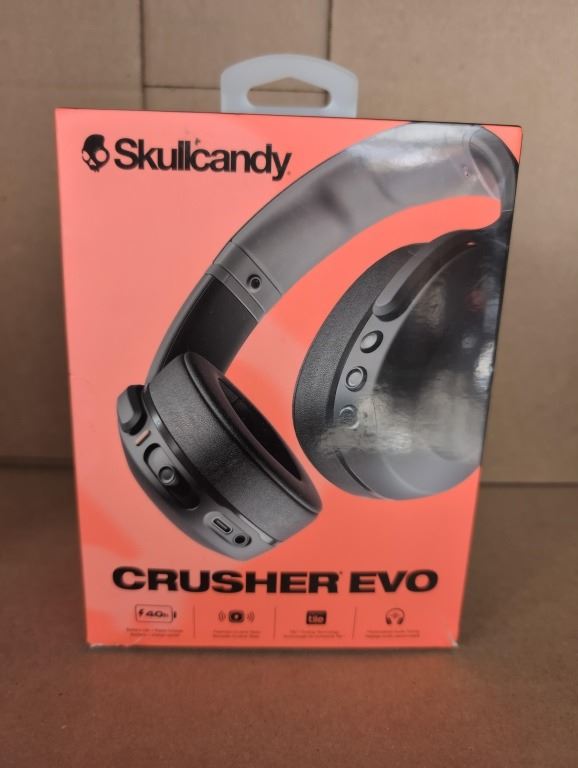 SKULLCANDY CRUSHER EVO OVER EAR SOUND ISOLATING WIRELESS HEADPHONES - TESTED WORKING, RETAIL $169