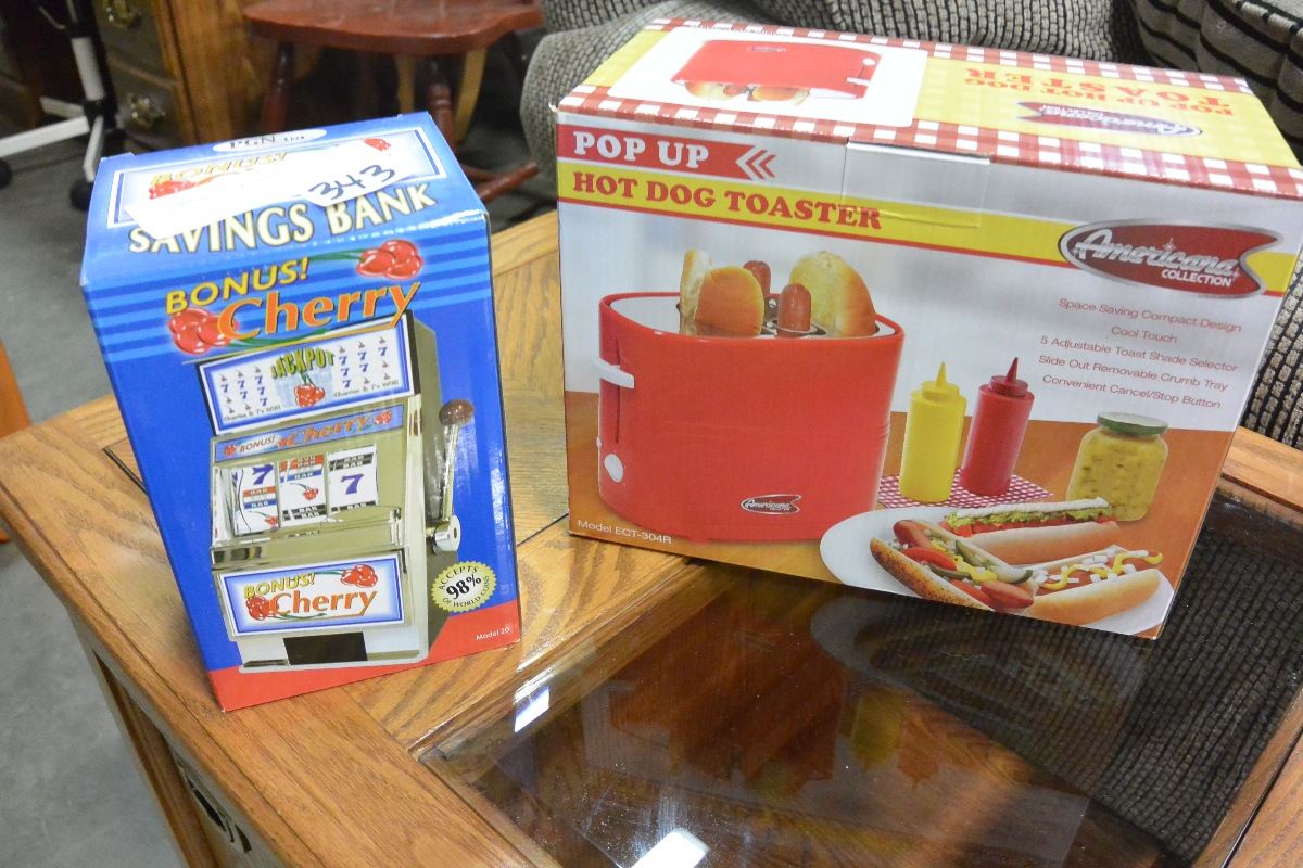 SLOT MACHINE BANK AND HOT DOG TOASTER