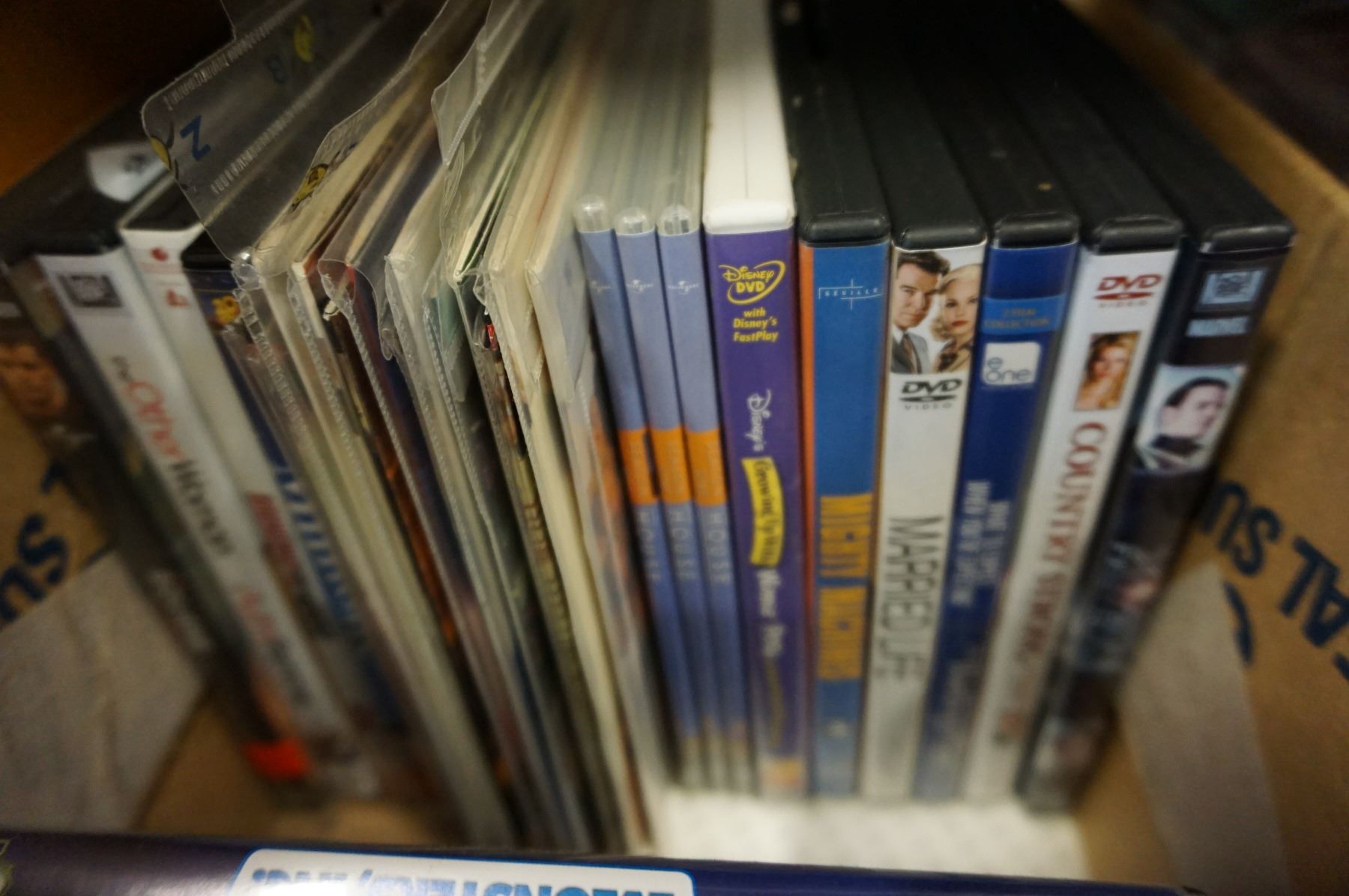 SMALL BOX OF DVDS, MATRIX, AND GAMES