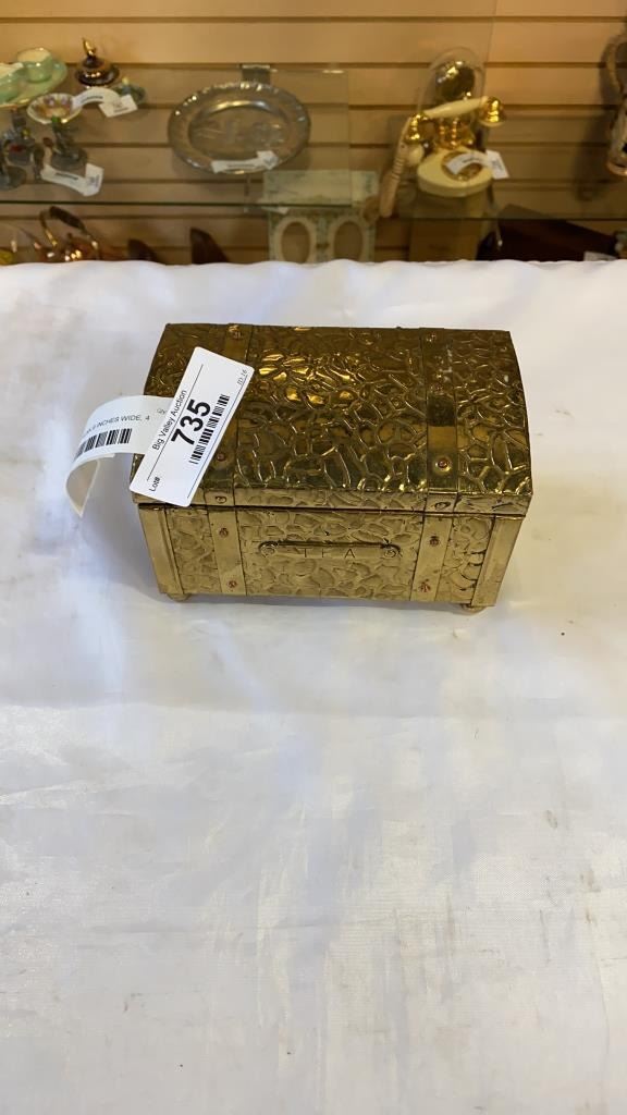SMALL BRASS TRUNK 6 INCHES WIDE, 4 INCHES TALL, 4 INCHES DEEP