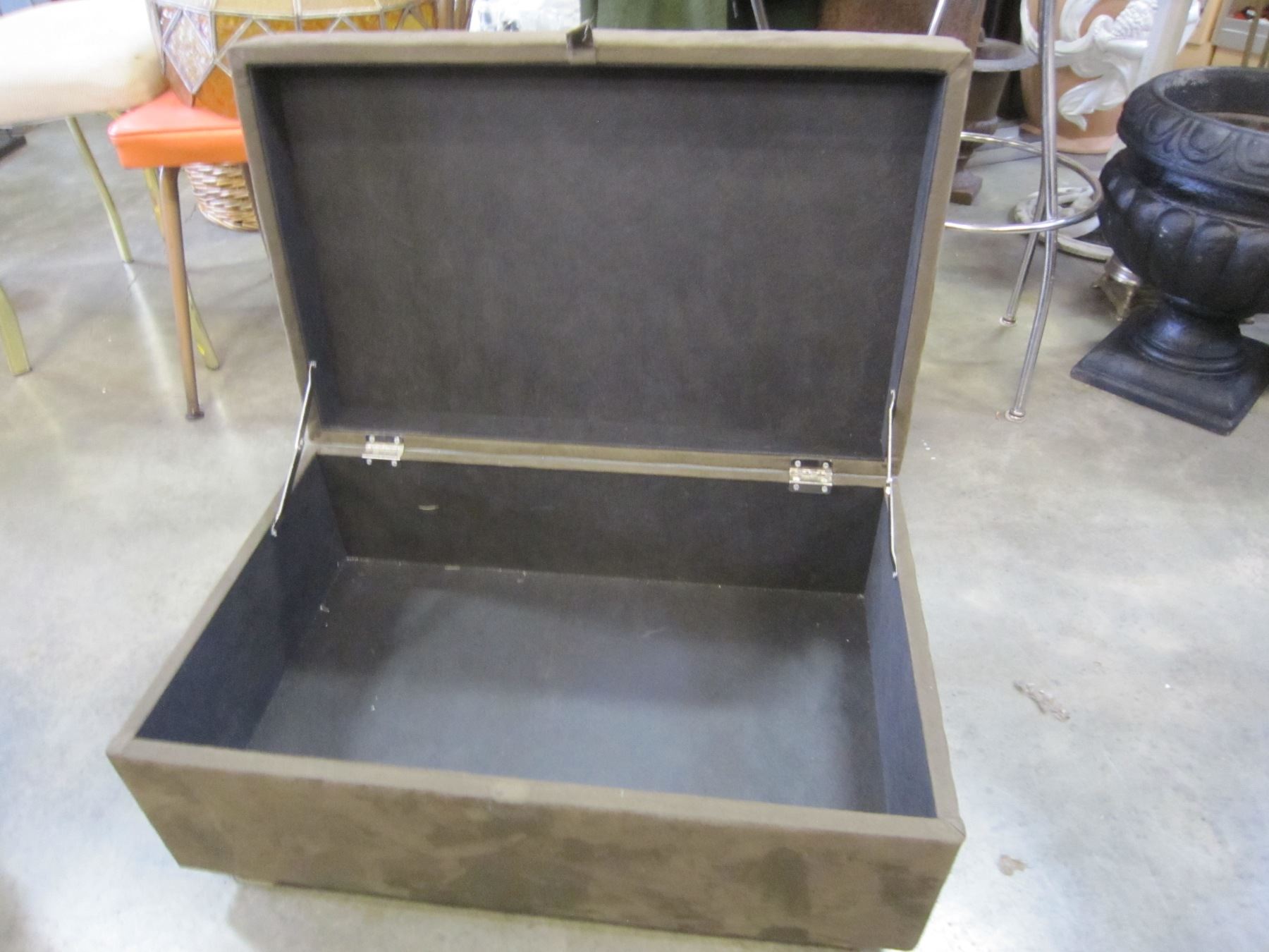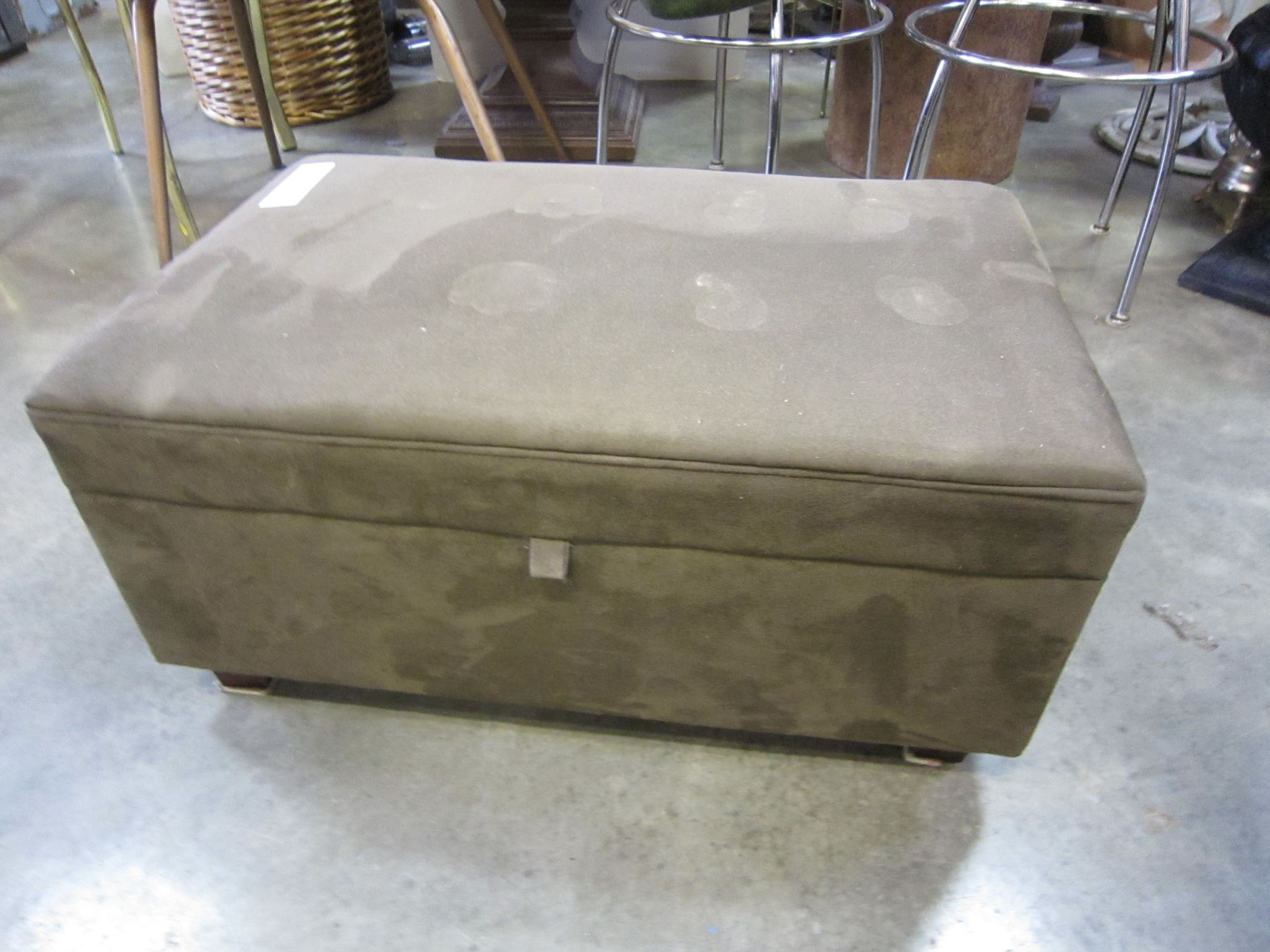 SMALL BROWN MICROFIBER OTTOMAN W/ STORAGE