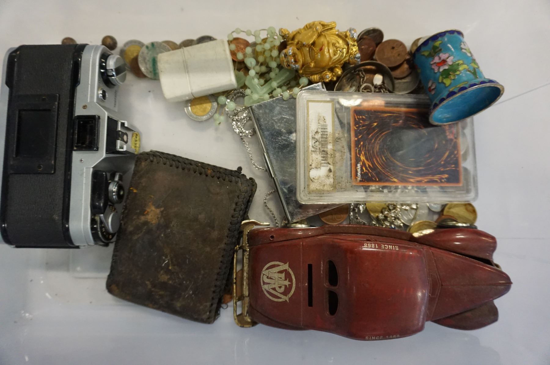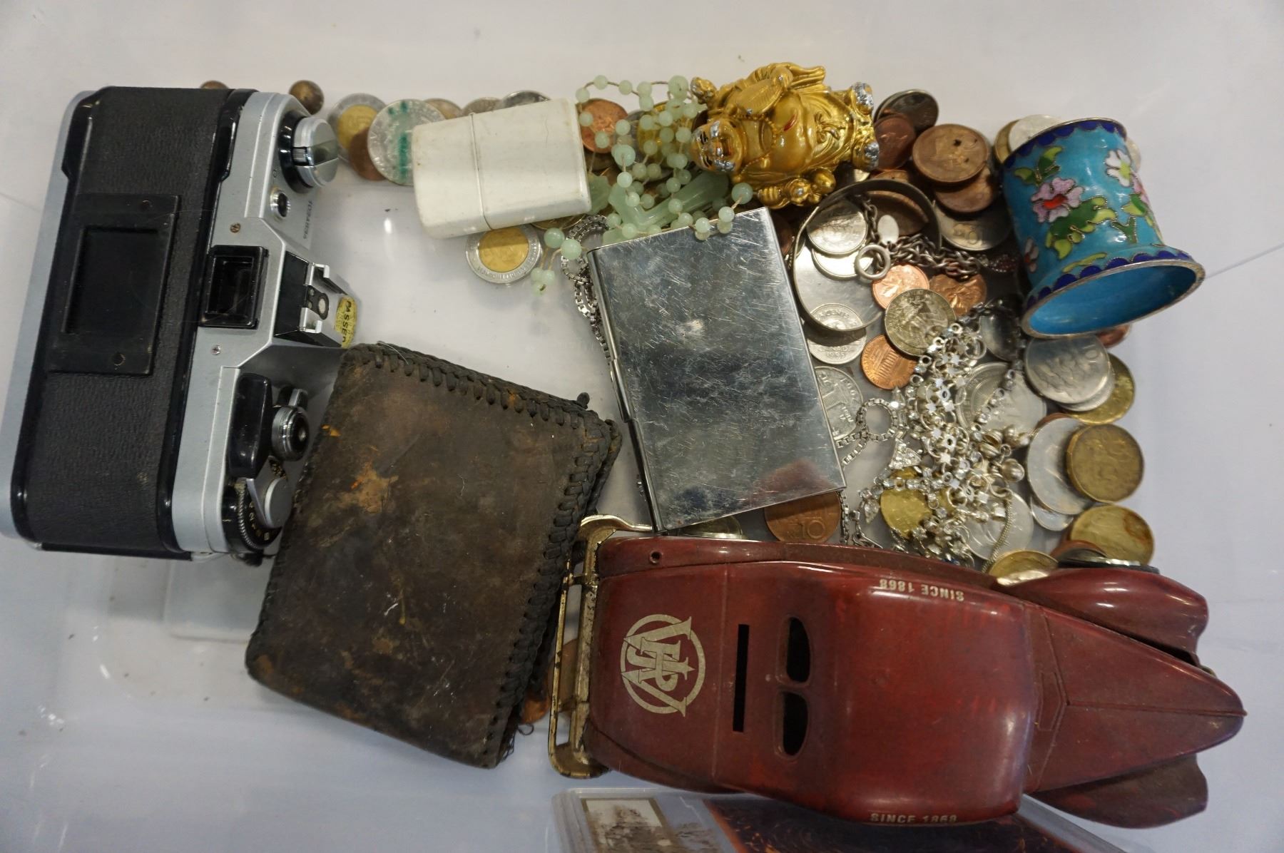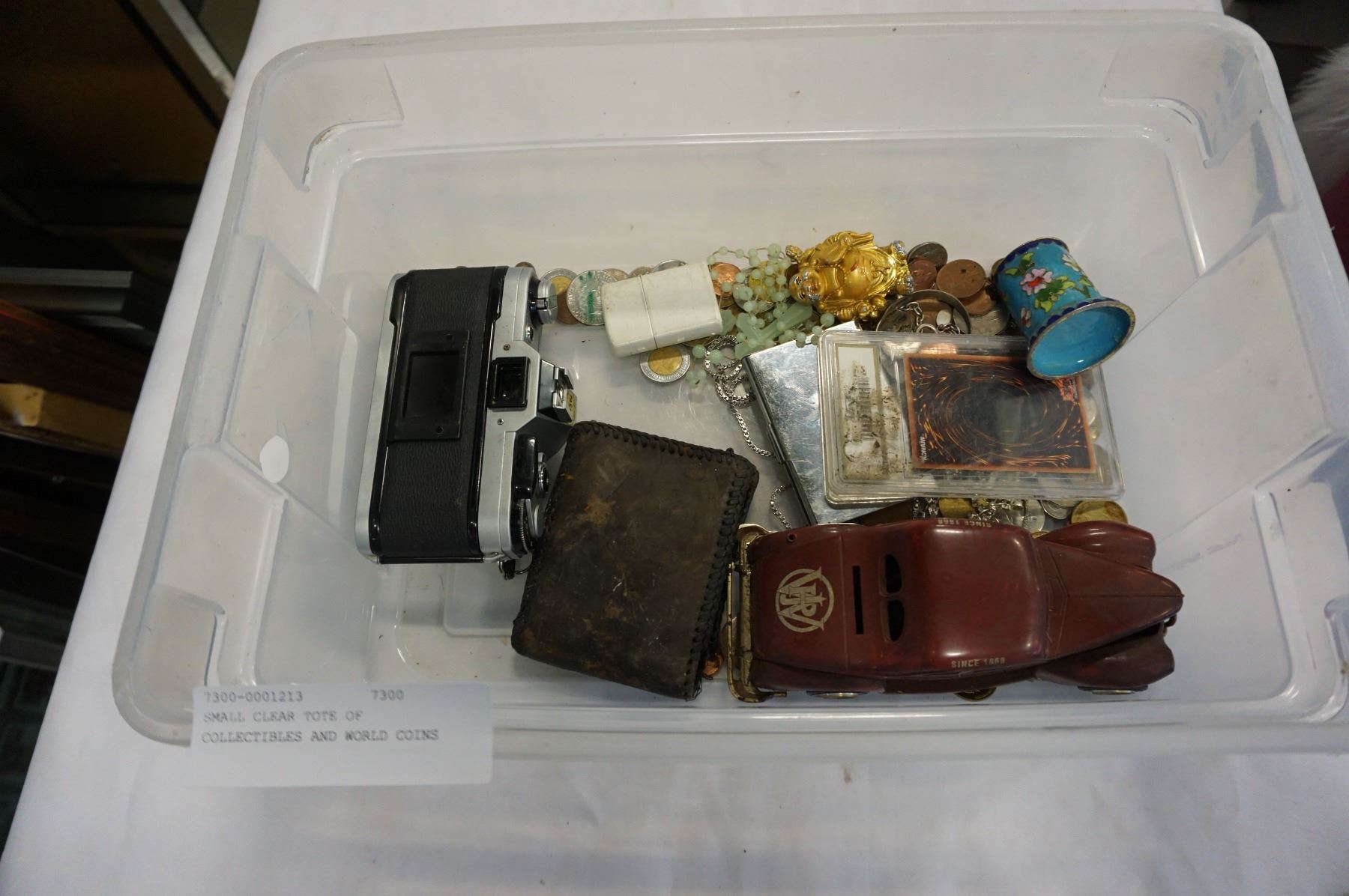 SMALL CLEAR TOTE OF COLLECTIBLES AND WORLD COINS