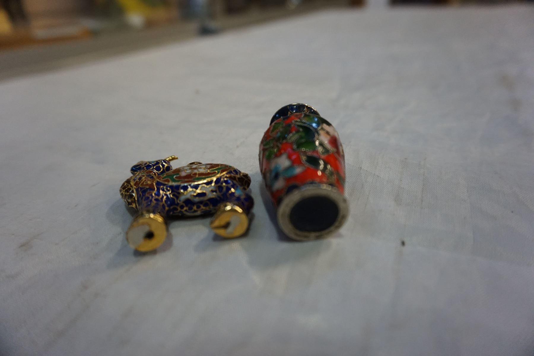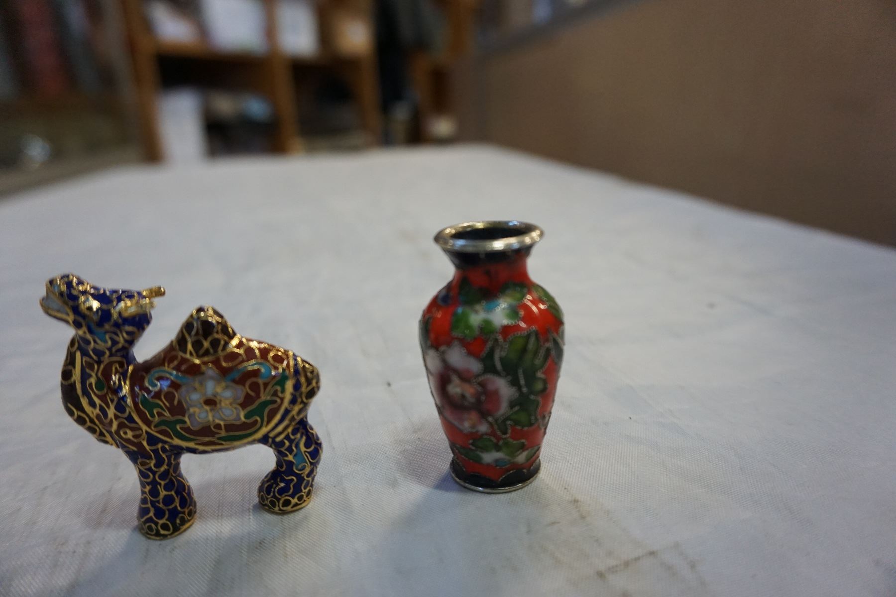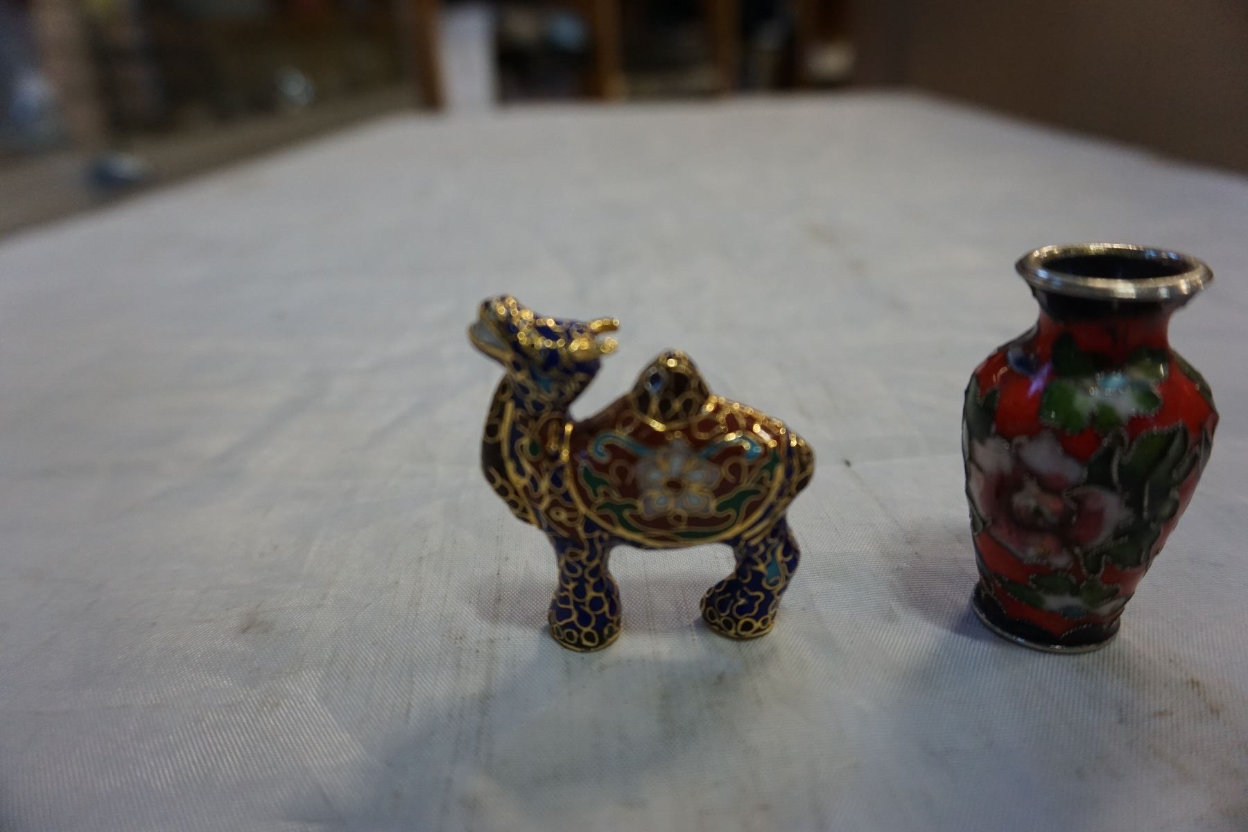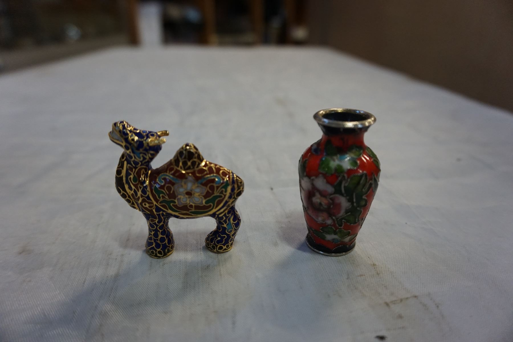 SMALL CLOISONNE VASE AND SMALL CLOISONNE CAMEL FIGURE