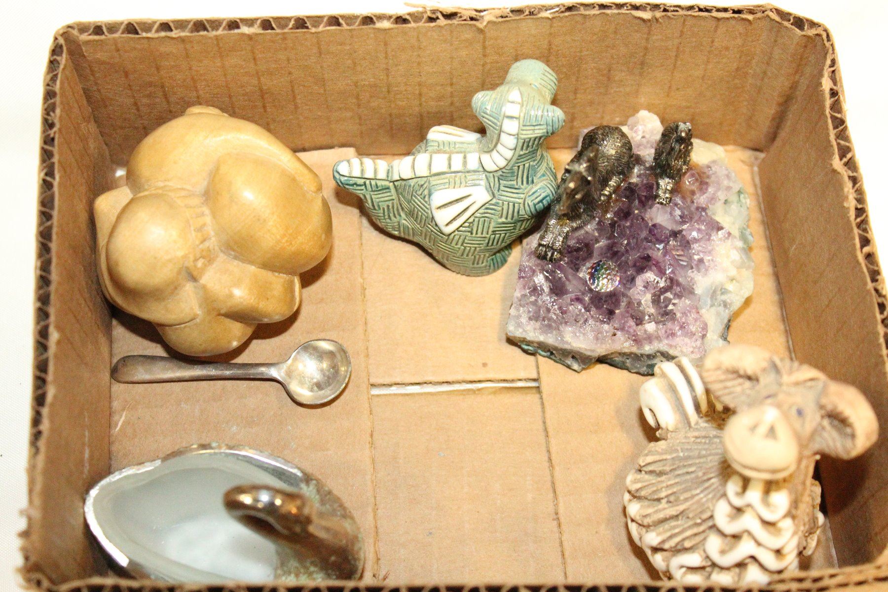 SMALL FIGURES AND AMETHYST CASED FIGURE