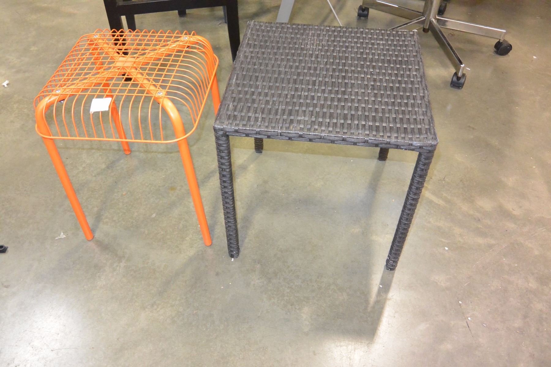 SMALL ORANGE MESH ENDTABLE AND RATTAN ENDTABLE