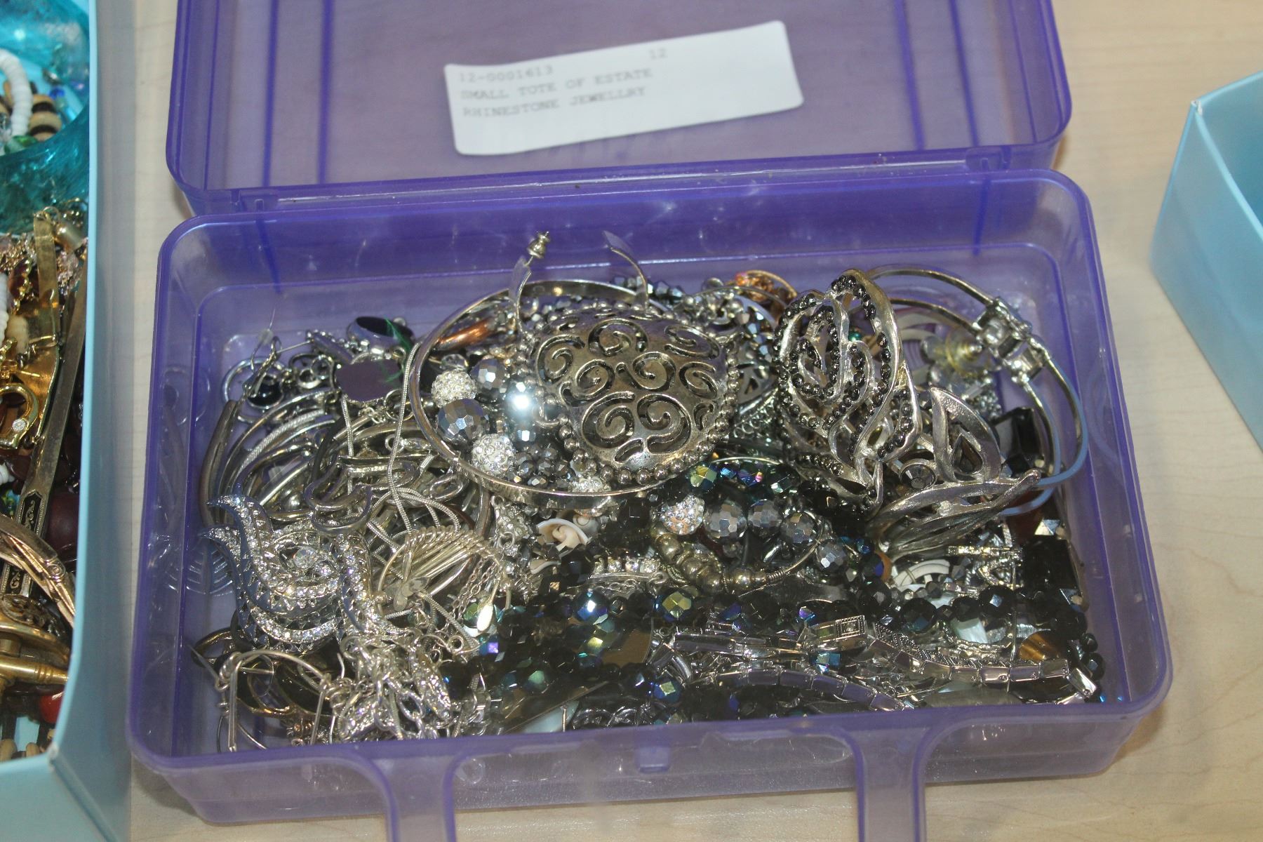 SMALL TOTE OF ESTATE RHINESTONE JEWELLRY