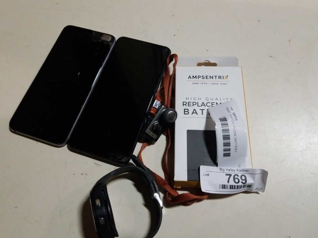 SMART WATCH, PHONE BATTERY REPLACEMENT, AND 2 PARTS PHONES