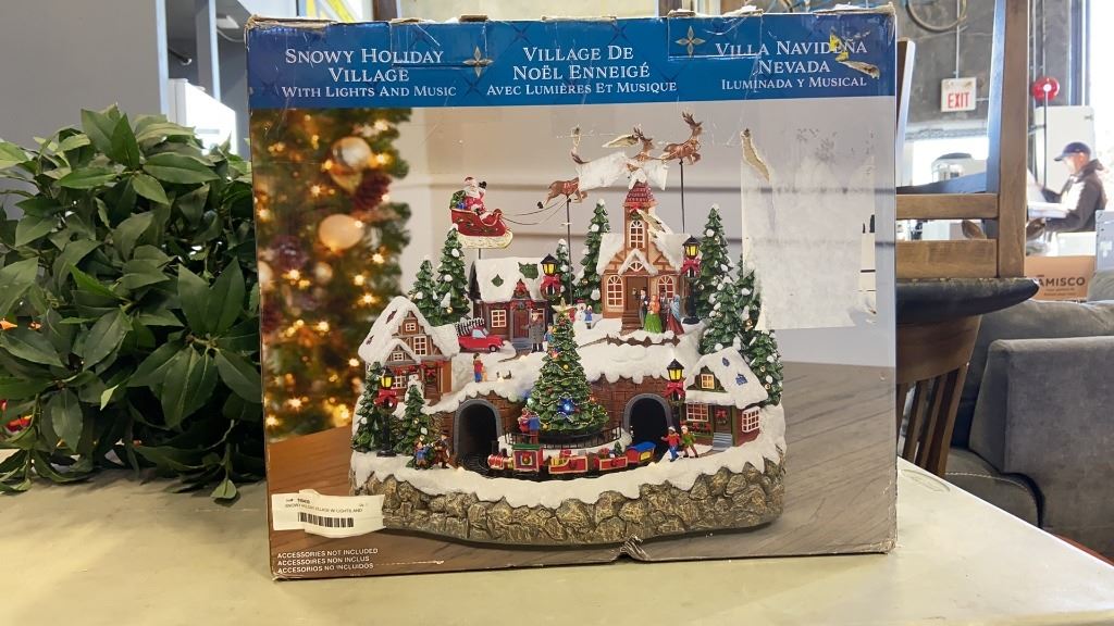 SNOWY HOLIDAY VILLAGE W/ LIGHTS AND MUSIC