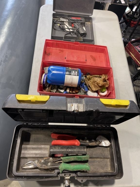SOLDERING GUN AND TWO SMALL TOOLBOXES AND CONTENTS