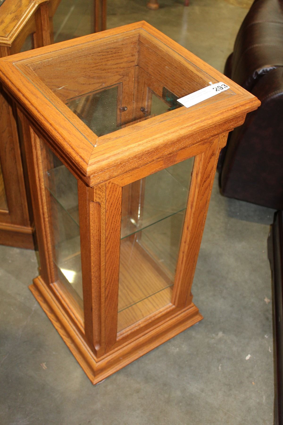 SOLID OAK BUHLER FURNITURE SQUARE GLASS DISPLAY PEDESTLE