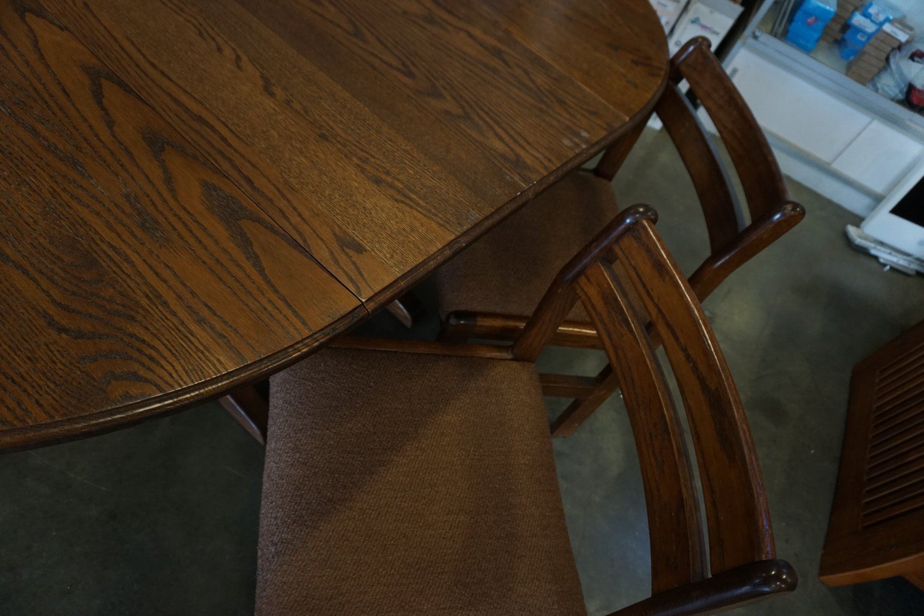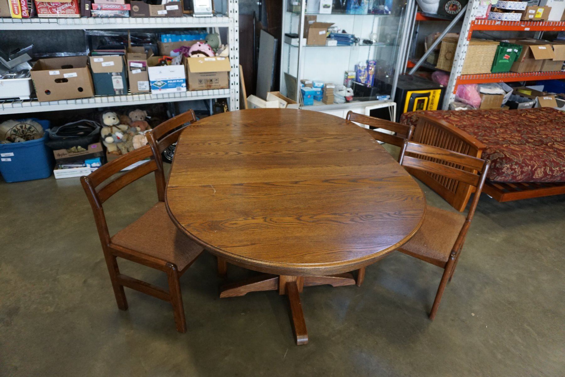 SOLID OAK DINING TABLE WITH 2 EXTENTIONS AND 4 CHAIRS