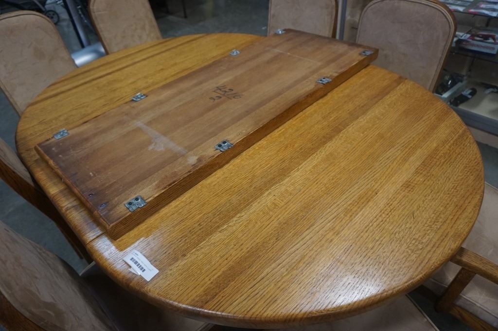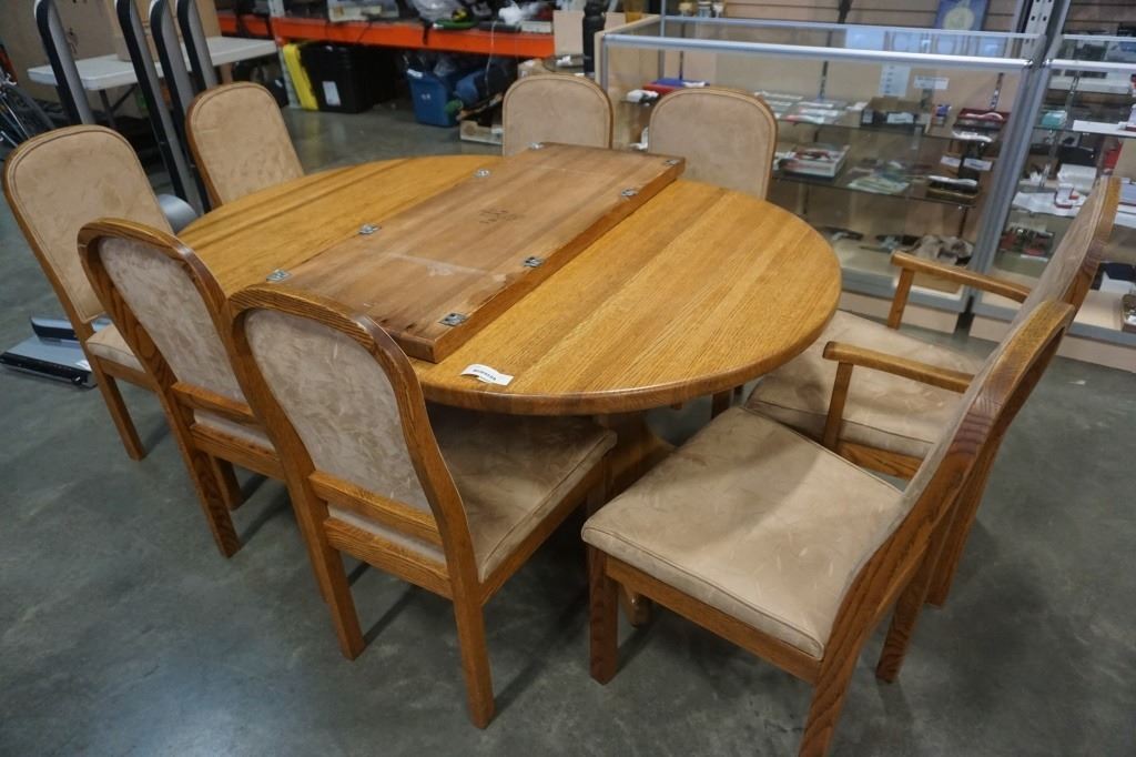 SOLID WOOD DINING TABLE WITH 2 LEAFS AND 8 CHAIRS
