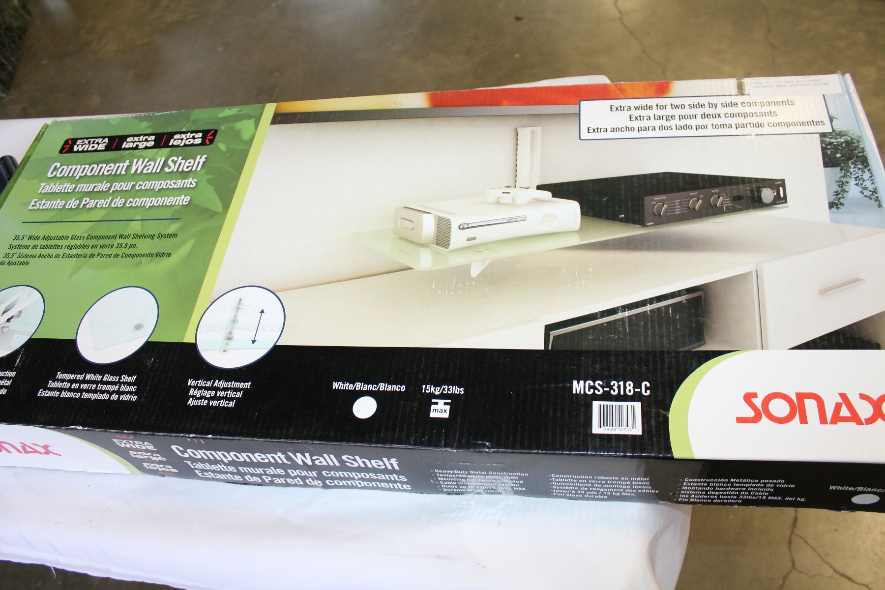 SONAC 35 1/2 INCH ADJUSTABLE COMPONENT WALL SHELVING SYSTEM