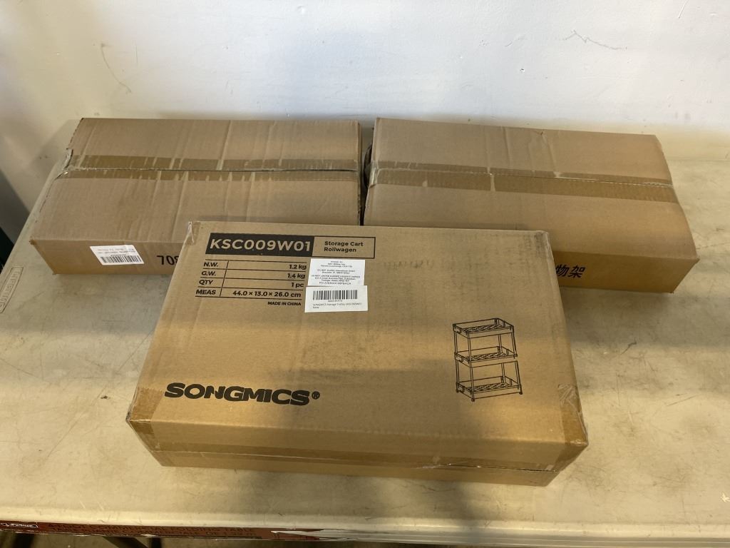 SONGMICS TROLLEY CART AND TWO PLASTIC TWO TIER SHELVES