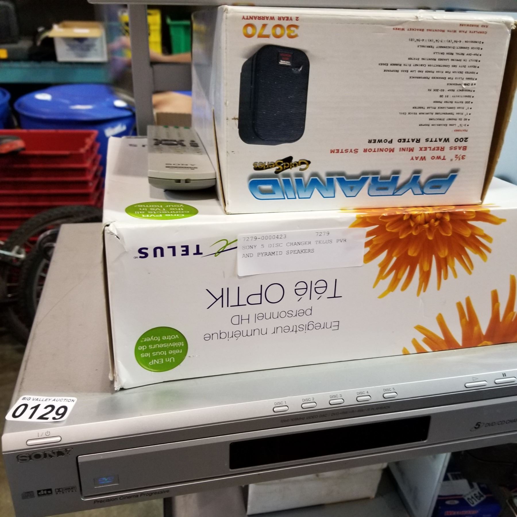 SONY 5 DISC CHANGER TELUS PVR AND PYRAMID SPEAKERS