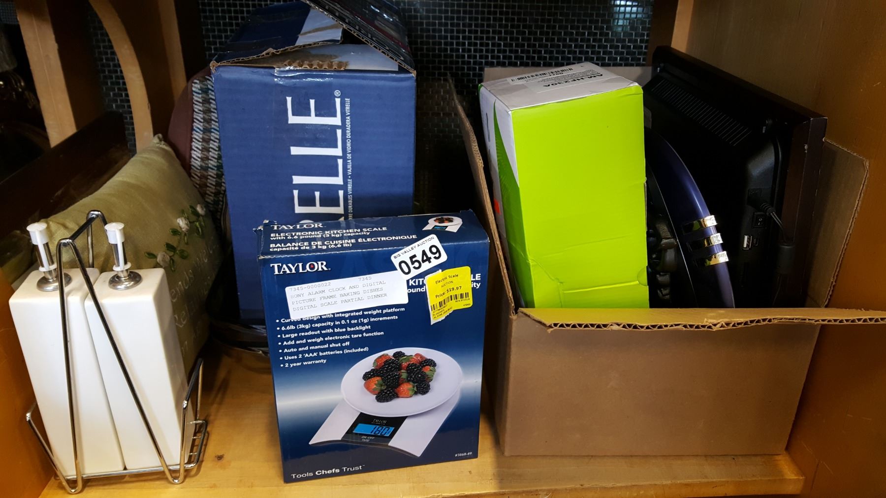SONY ALARM CLOCK AND DIGITAL PICTURE FRAME BAKING DISHES DIGITAL SCALE PARTIAL DINNER SET CLOCKS FRA