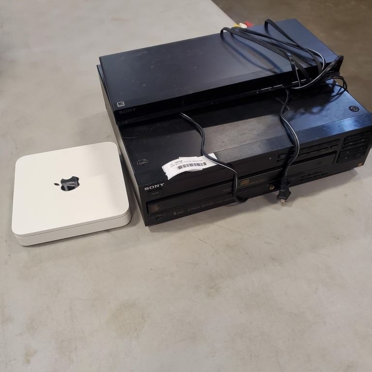 SONY BLU RAY PLAYER, APPLE TIME MACHINE, AND SONY DISC CHANGER
