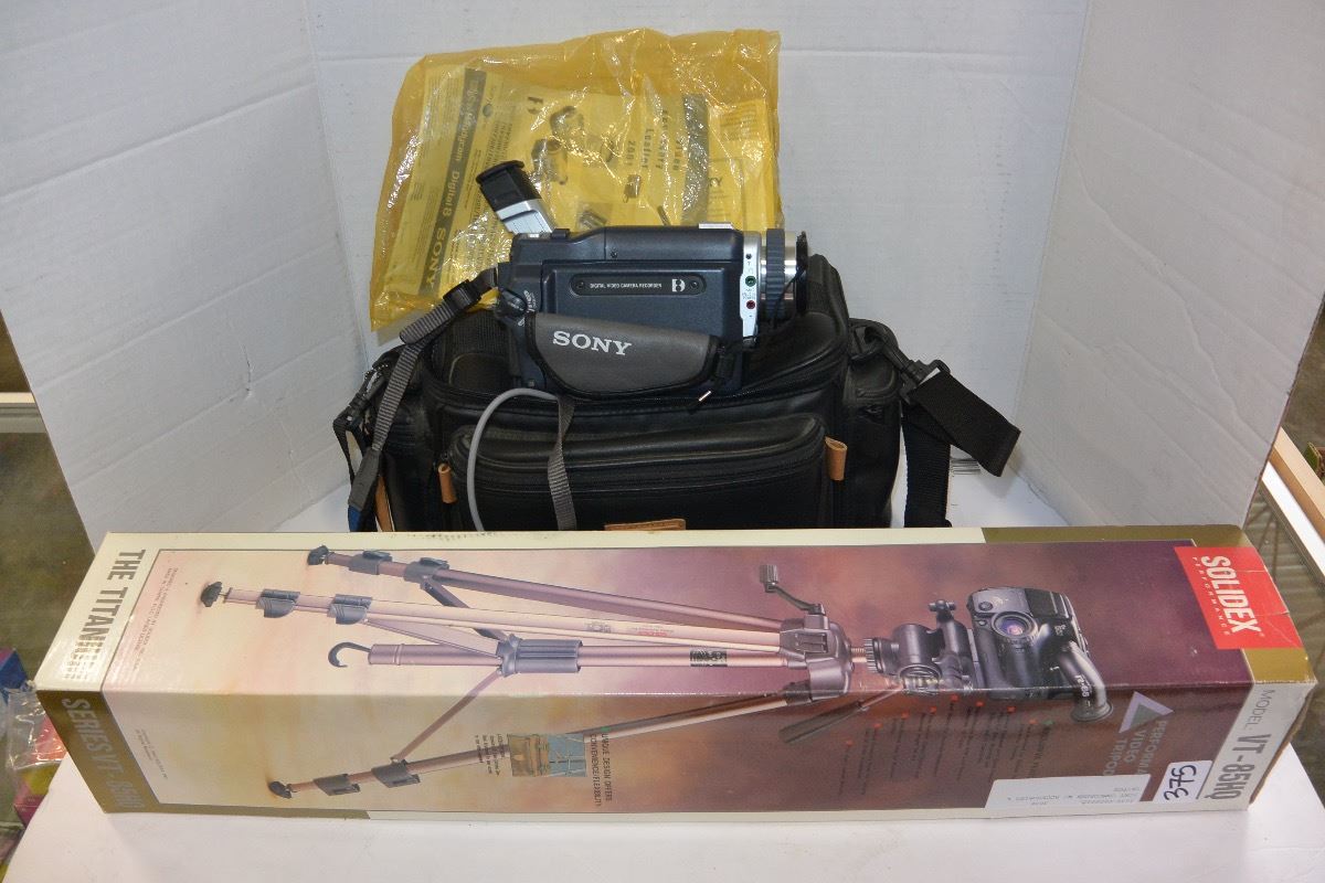 SONY CAMCORDER W/ ACCESORIES & TRIPOD