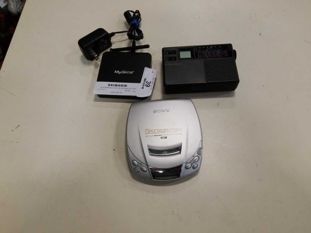 SONY DISCMAN AND MY GICA STREAMING BOX WITH GRUNDIG TRAVELLER II RADIO
