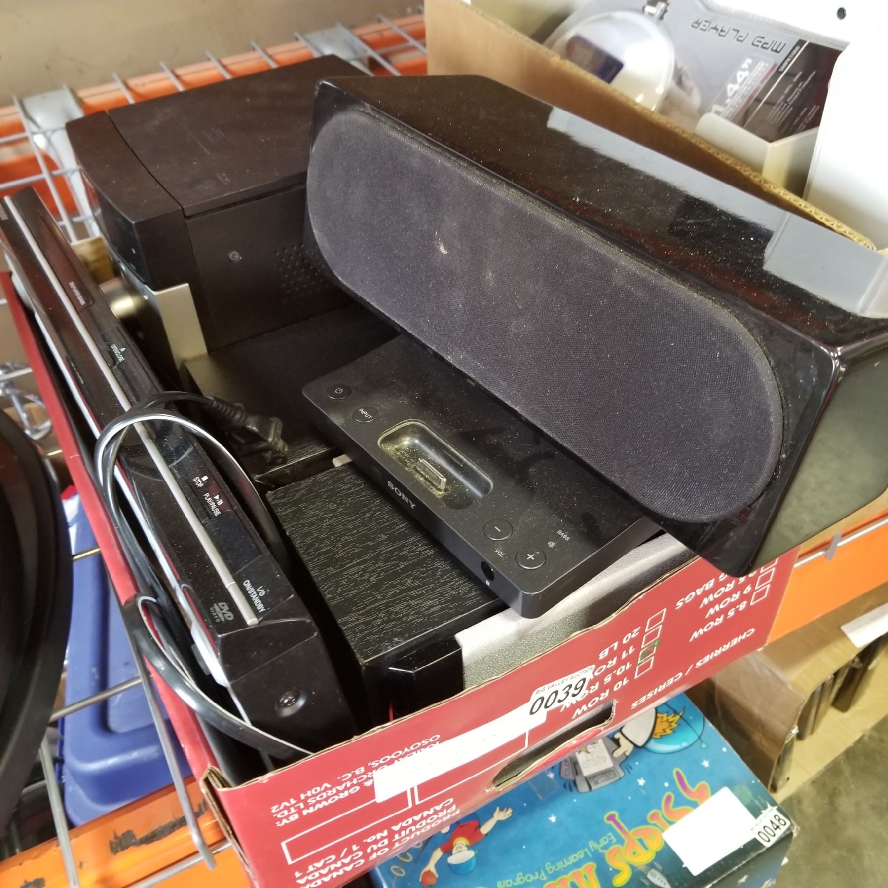 SONY STEREO, TOSHIBA DVD PLAYER, AND SONY DOCKING STATION