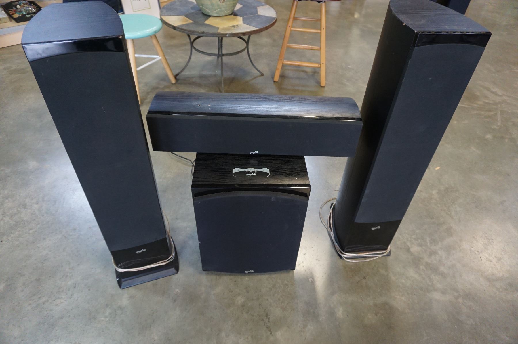 SOUND STAGE SUBWOOFER, 2 FLOOR SPEAKERS, AND CENTER SPEAKER