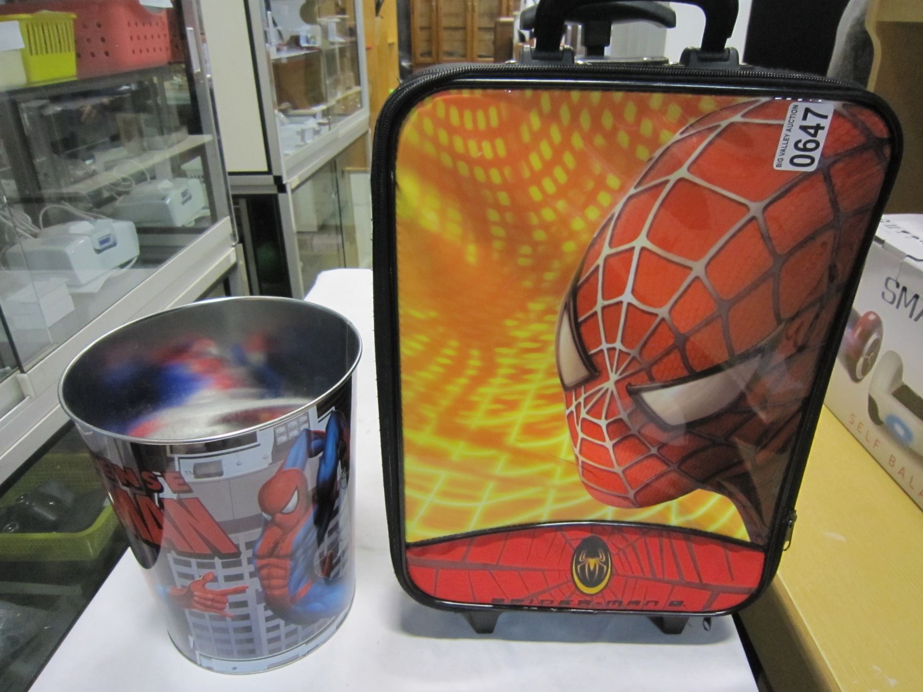 SPIDERMAN SUITCASE, WASTE BIN, AND TOYS