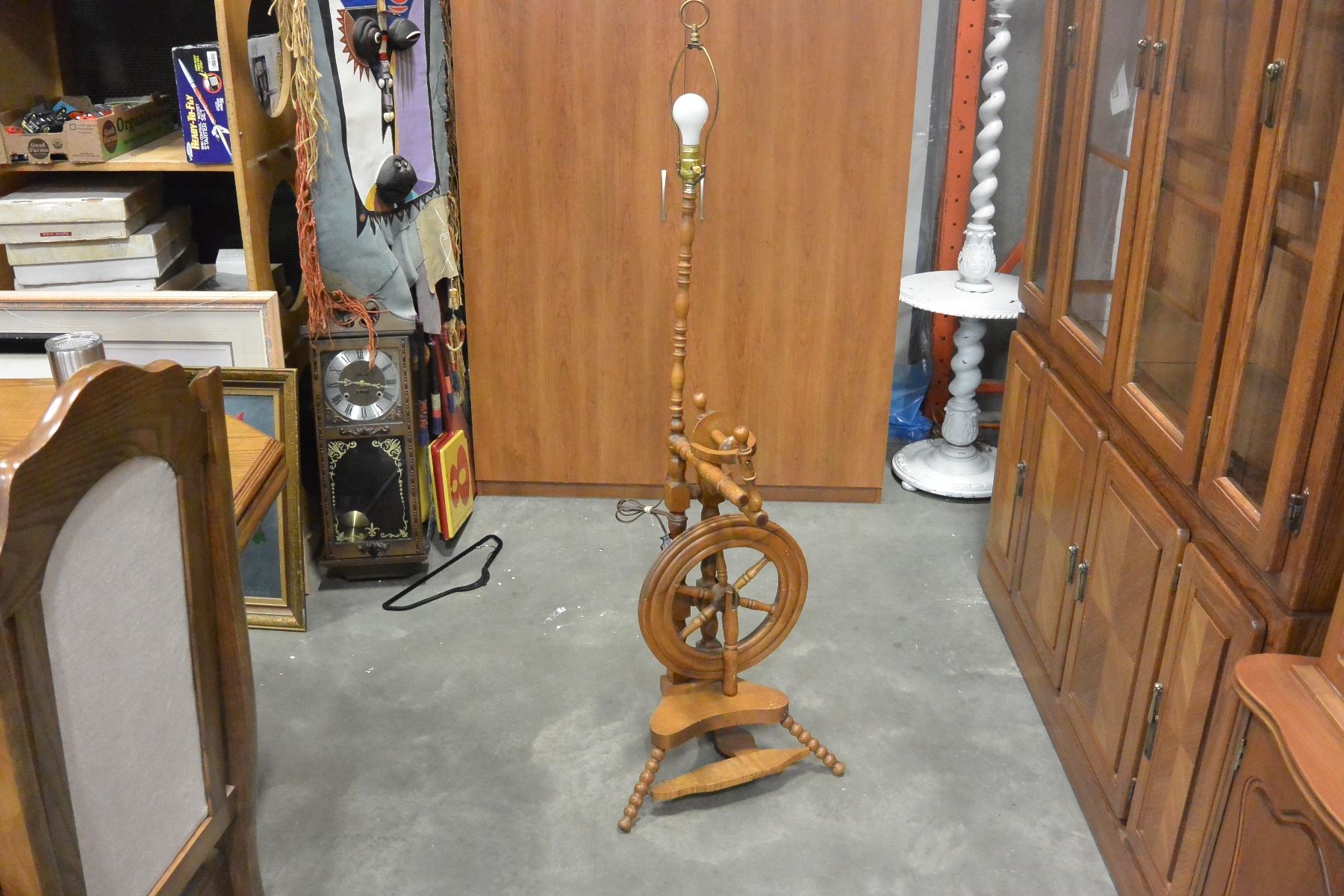 SPINNING WHEEL FLOOR LAMP AND BARLEY TWIST LAMP BASE