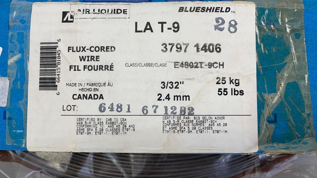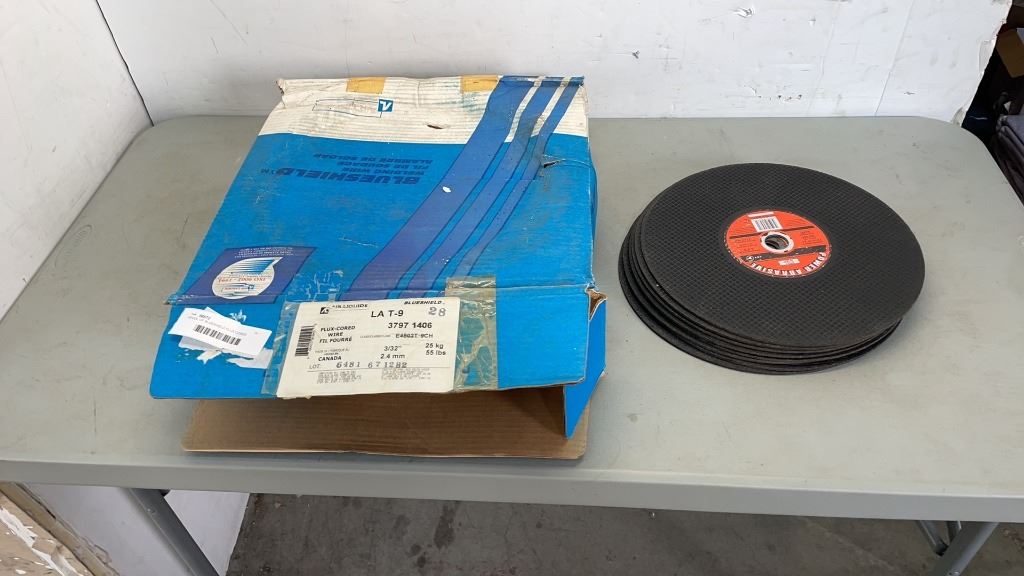 SPOOL OF BLUESHIELD FLUX CORED WELDING WIRE AND ABRASIVE DISC