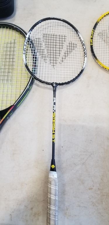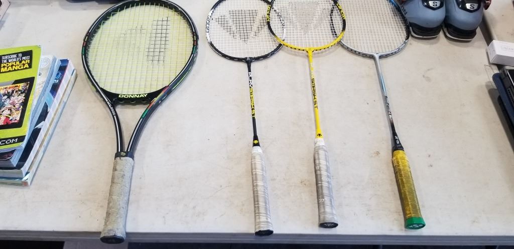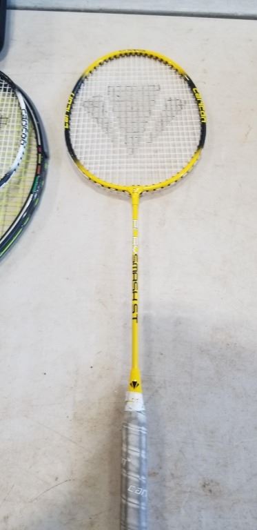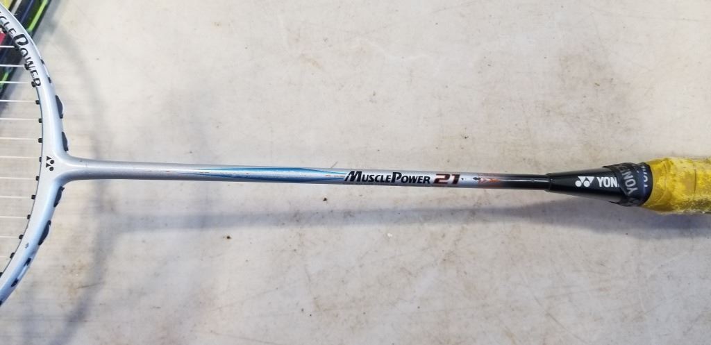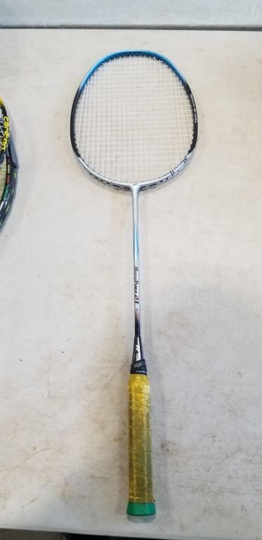 SQUASH RACQUET AND ASSORTED BADMINTON RACQUETS