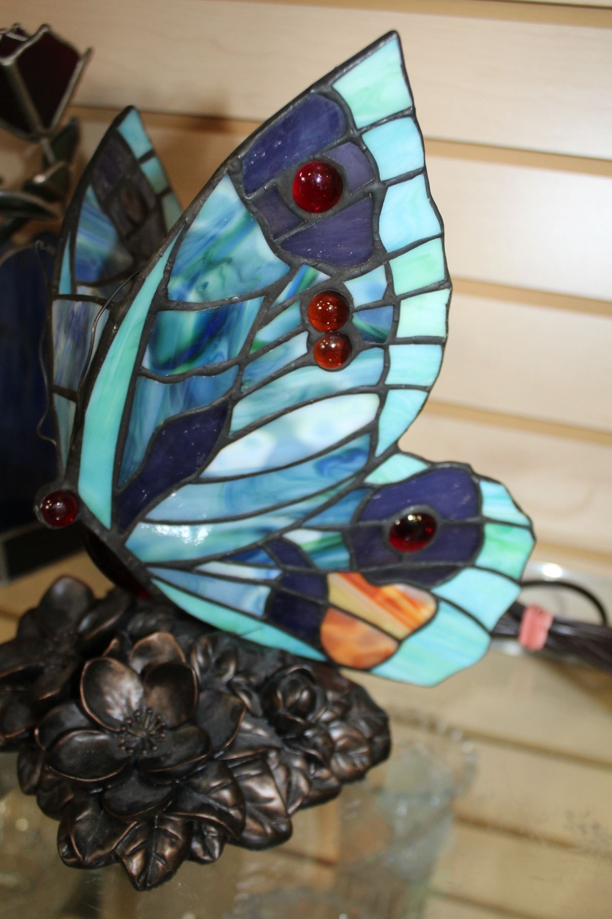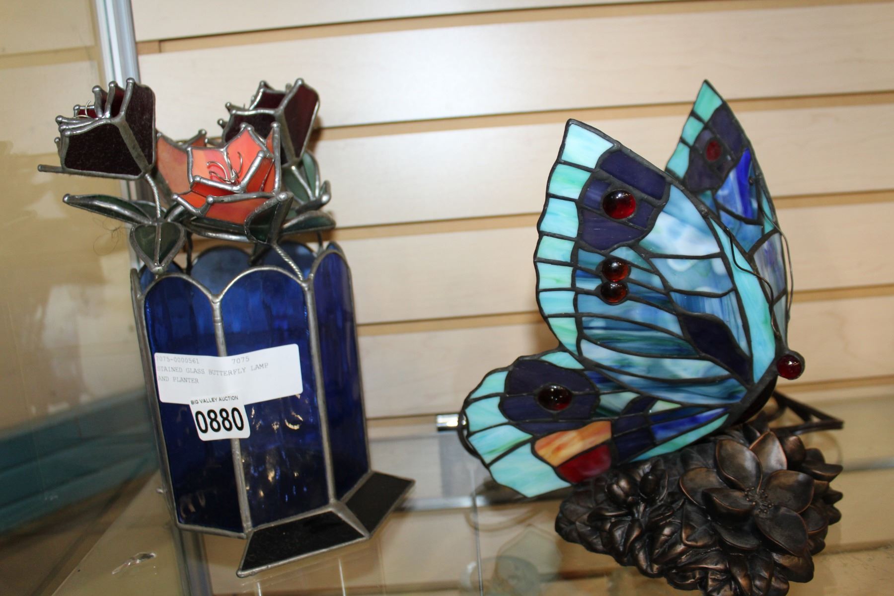 STAINED GLASS BUTTERFLY LAMP AND PLANTER