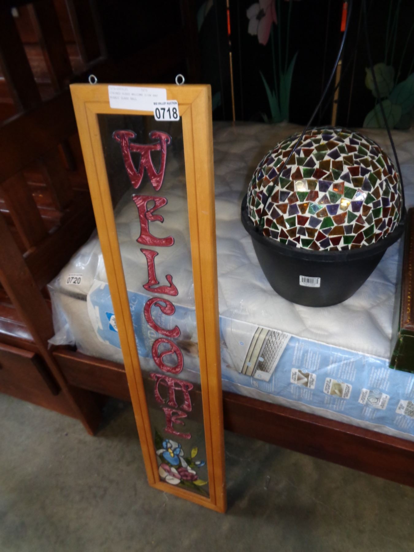 STAINED GLASS WALCOME SIGN AND MOSAIC GLASS BALL