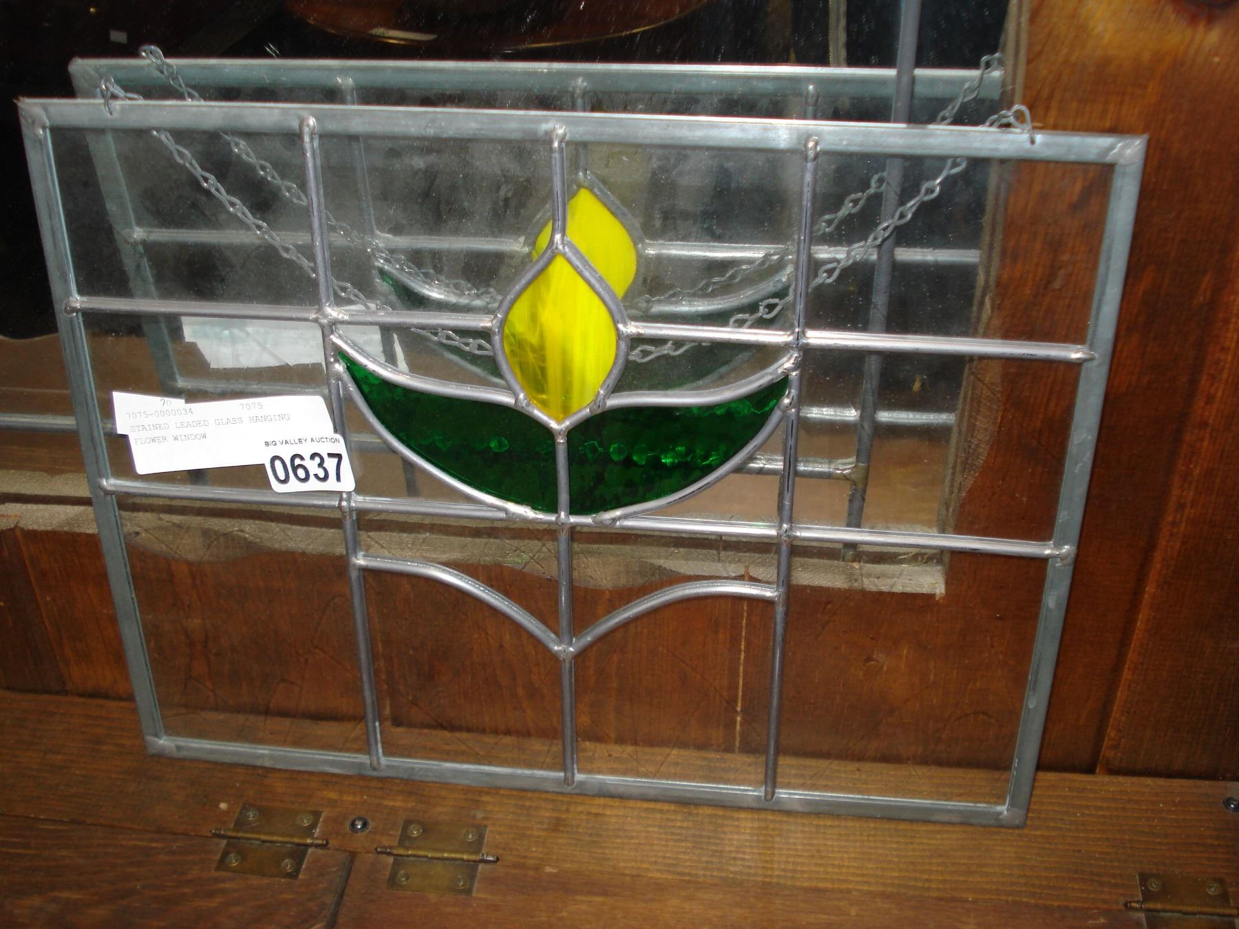 STAINED LEADED GLASS HANGING FLOWER WINDOW