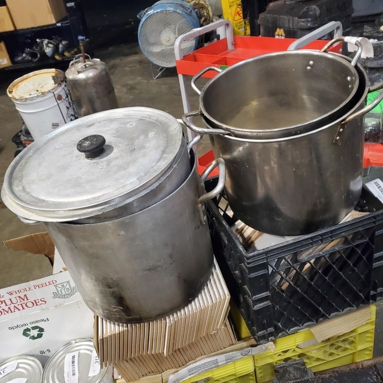 STAINLESS AND ALUMINUM COMMERCIAL SIZE POTS
